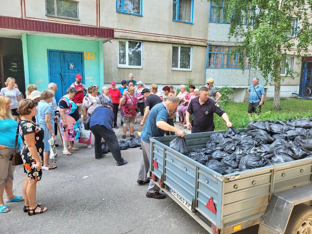 400 продуктових наборів передали поліцейські разом з волонтерами жителям смт Ківшарівка