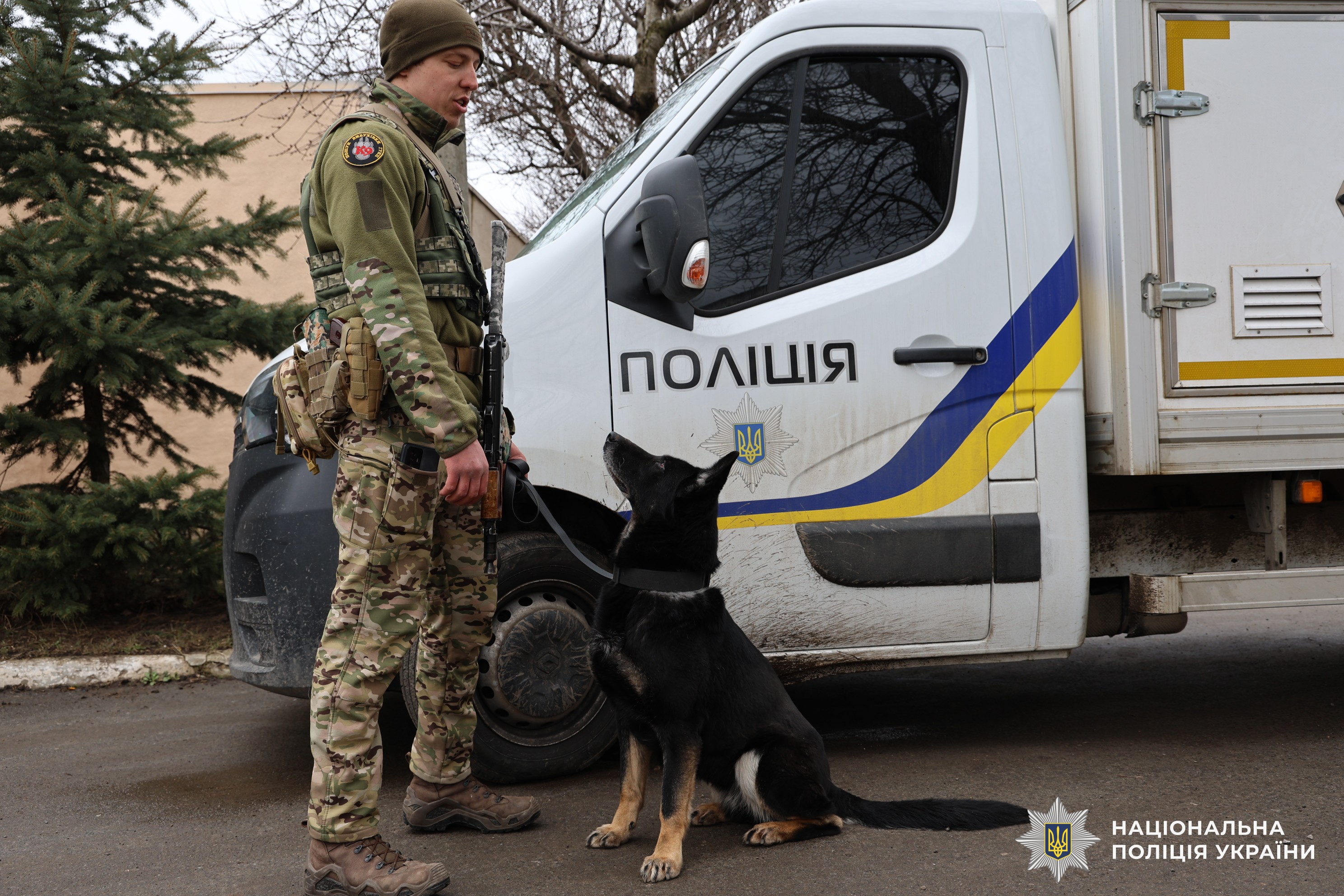 Працівники кінологічного центру Головного управління в Харківській області разом зі своїми чотирилапими колегами несуть службу на блокпостах Харкова, передмістя, а також на деокупованих територіях.