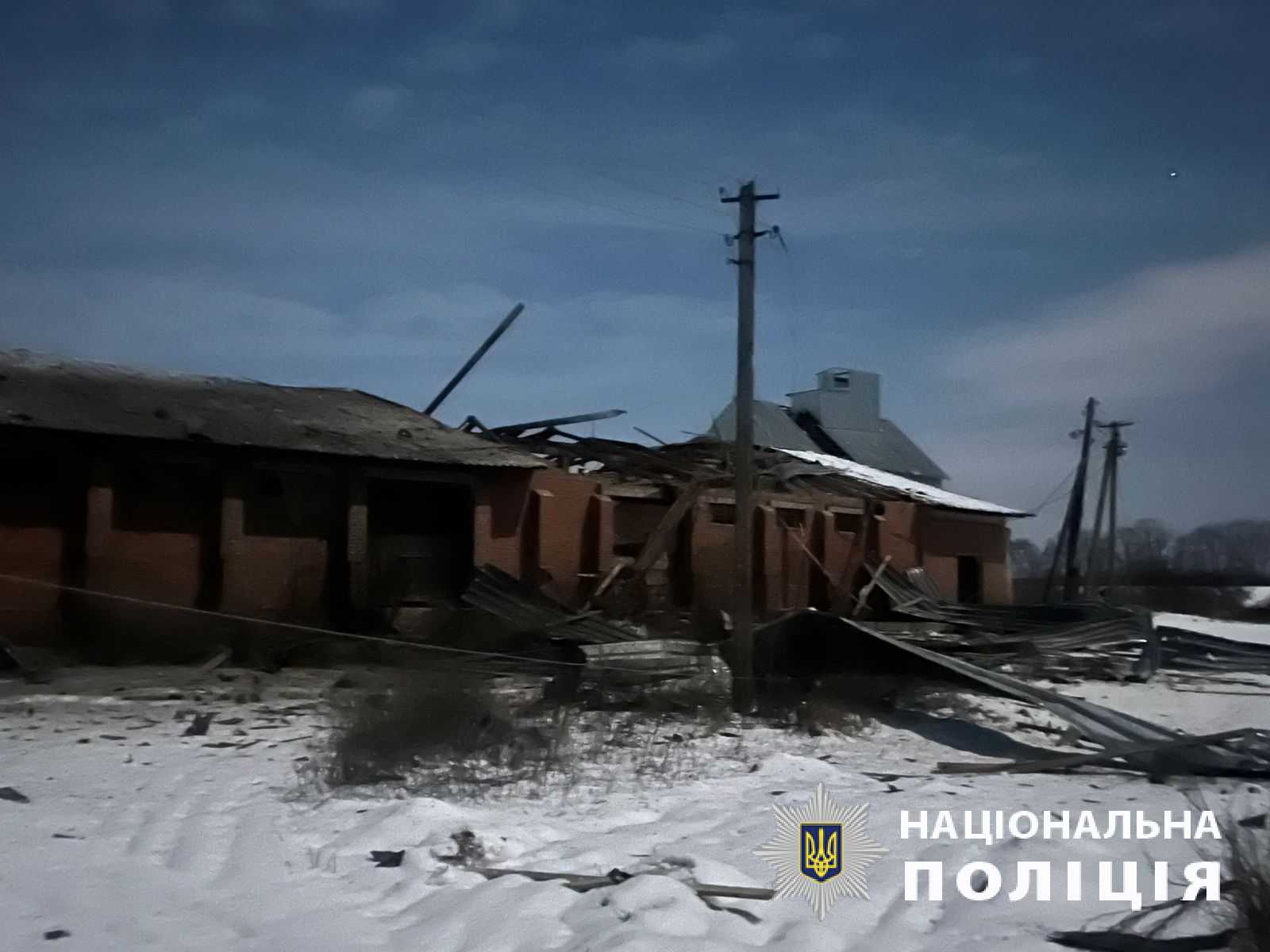 Внаслідок ударів ворожих безпілотників Shahed у селі Мокра Рокитна Харківського району пошкоджено приватне агропідприємство. Пошкоджені складські ангари, загинули 15 корів.