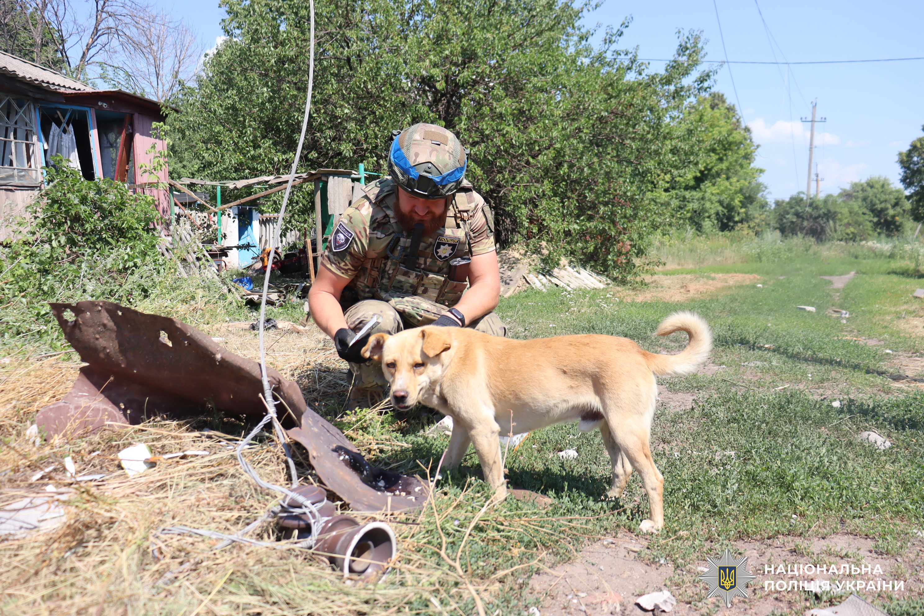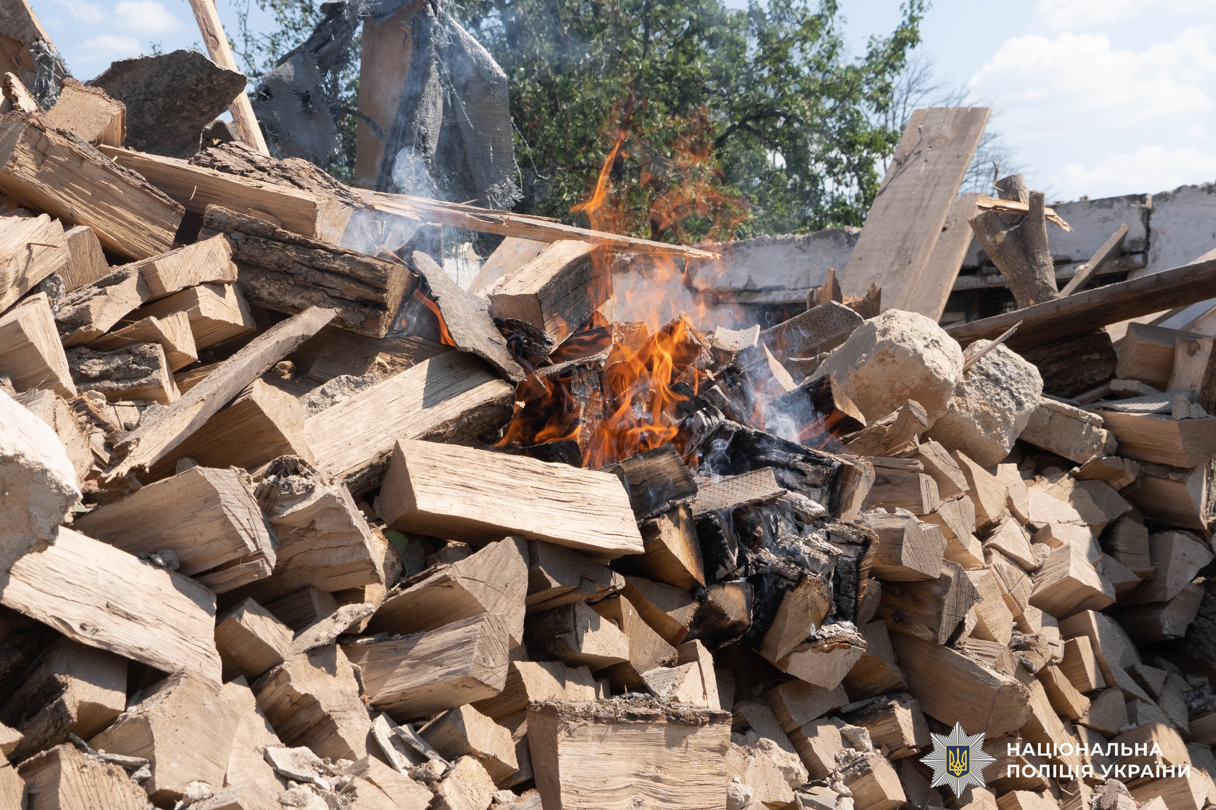 В таких ситуаціях поліція - єдина можливість вирішити проблеми з евакуацією людей, тварин, гуманітарною допомогою та навіть з пожежею. Поки слідчі та поліцейські офіцери громади з’ясовували, чи є поранені, документували наслідки влучань, почали тліти і розгоратися дрова. Під спекотним сонцем могла спалахнути сильна пожежа. Не роздумуючи, правоохоронці почали підручними засобами – землею, піском гасити вогонь. Їм допомагали місцеві мешканці, які принесли води з криниці. В той же час чоловіку, який пересувається на милицях, поліція надала медичну допомогу. У постраждалого незначні осколкові поранення.