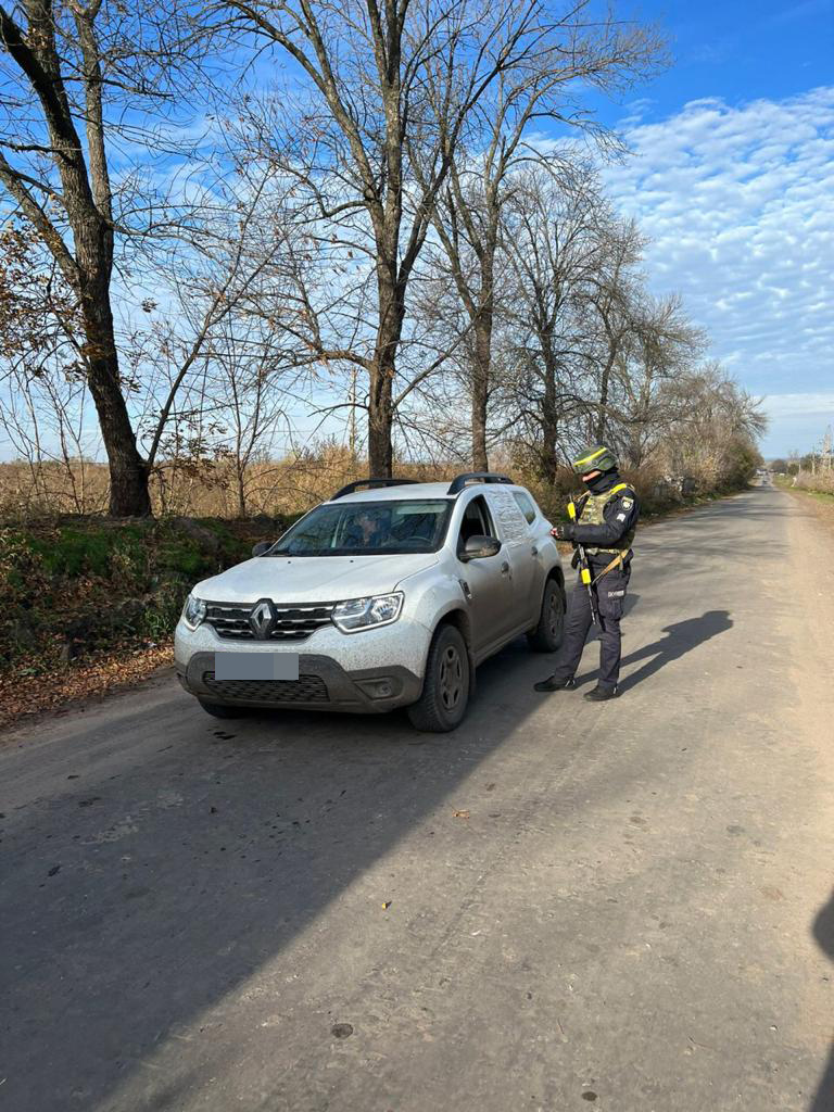 Під час несення служби на блокпосту інспектора сектору реагування патрульної поліції відділу поліції № 3 ХРУП № 3 зупинили автомобіль. При перевірці транспортного засобу в салоні автомобіля в ніші водійських дверцят правоохоронці виявили ніж, який чоловік перевозив без будь-яких дозвільних документів. Відомості про подію внесені до Єдиного реєстру досудових розслідувань. Проводяться слідчі дії.
