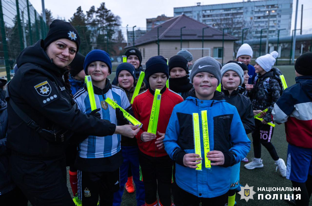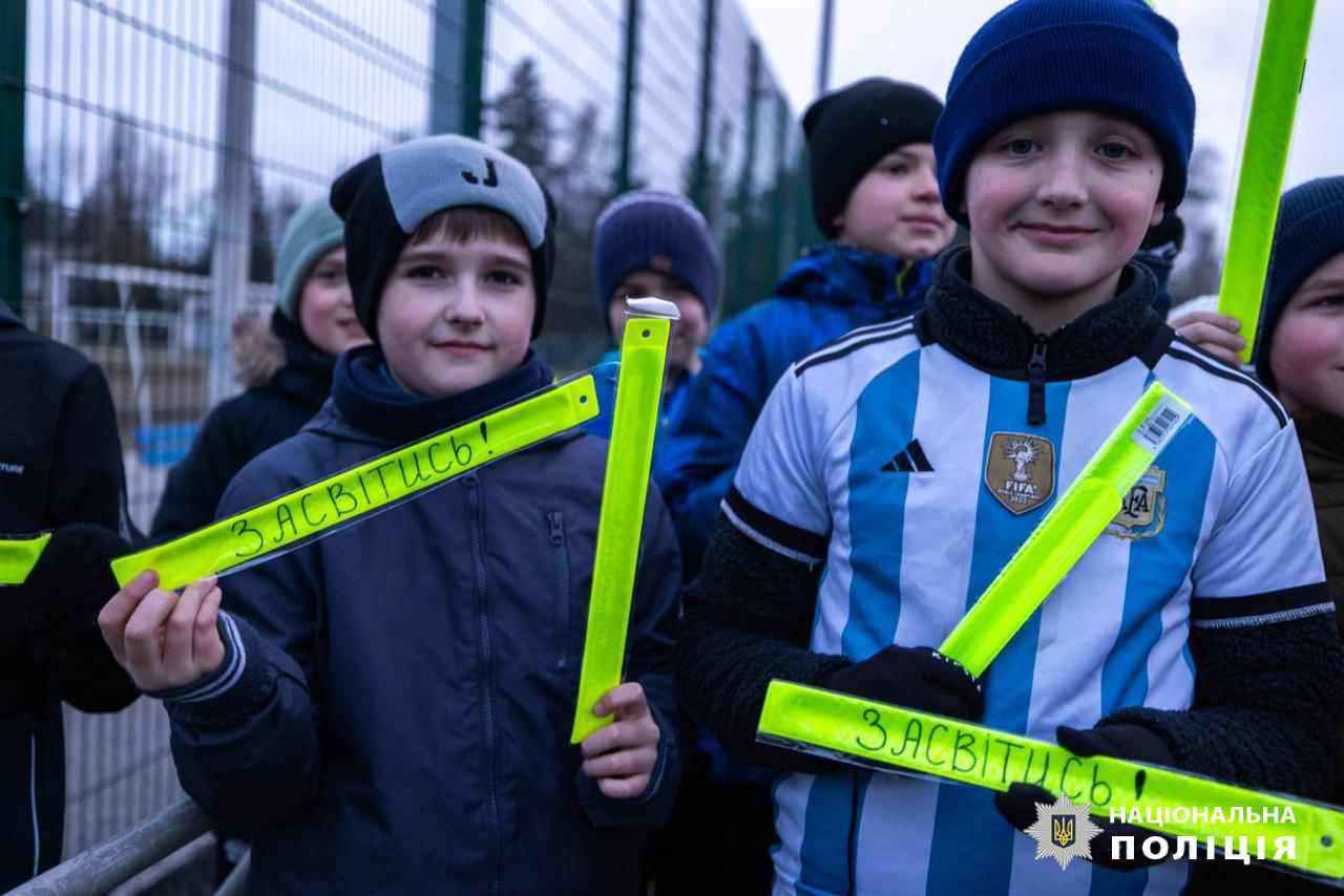 Поліцейські розповіли дітям про необхідність розміщення світловідбивних елементів на рівні очей водія транспортного засобу. Це дасть можливість вчасно їх помітити, особливо в умовах обмеженої видимості. А також про необхідність вибрати одяг, взуття або рюкзаки з вбудованими світловідбивними елементами.