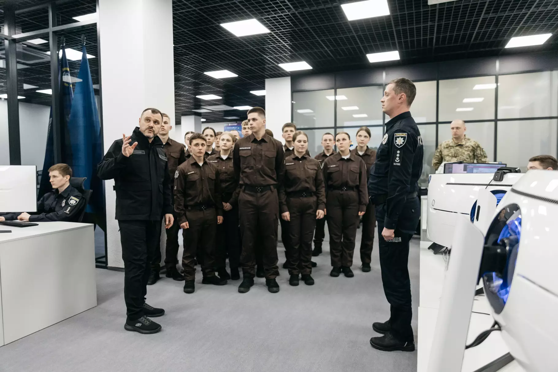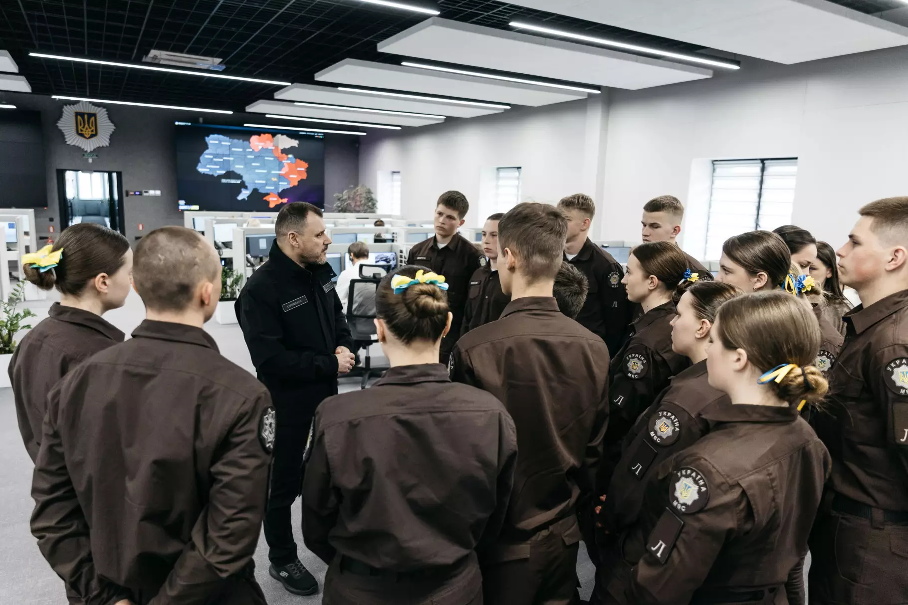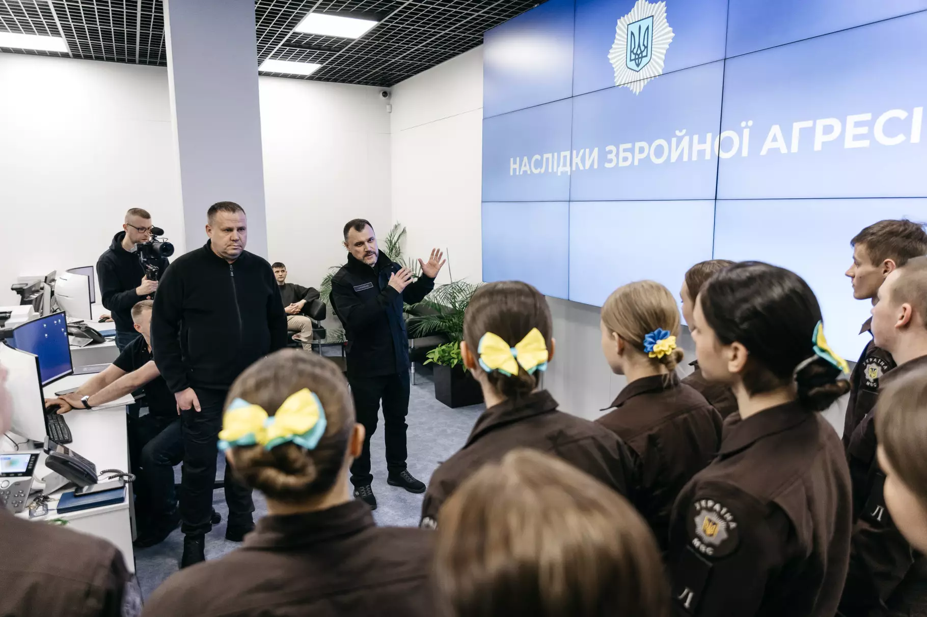 На початку своєї зустрічі з ліцеїстами Ігор Клименко розповів про принцип роботи та розвиток Служби 112. Міністр особисто провів екскурсію комунікаційним центром, розповів про функції цього підрозділу, нові сучасні підходи в наданні допомоги громадянам під час екстремальних ситуацій, а також про роль Служби 112 в умовах відсутності тепла і світла минулої зими. За словами Міністра внутрішніх справ, відтепер Служба 112 - це чотири комунікаційні центри у Києві, Львові, Дніпрі та Одесі. Оператори приймають екстрені виклики з усіх регіонів та скеровують їх до відповідних служб.