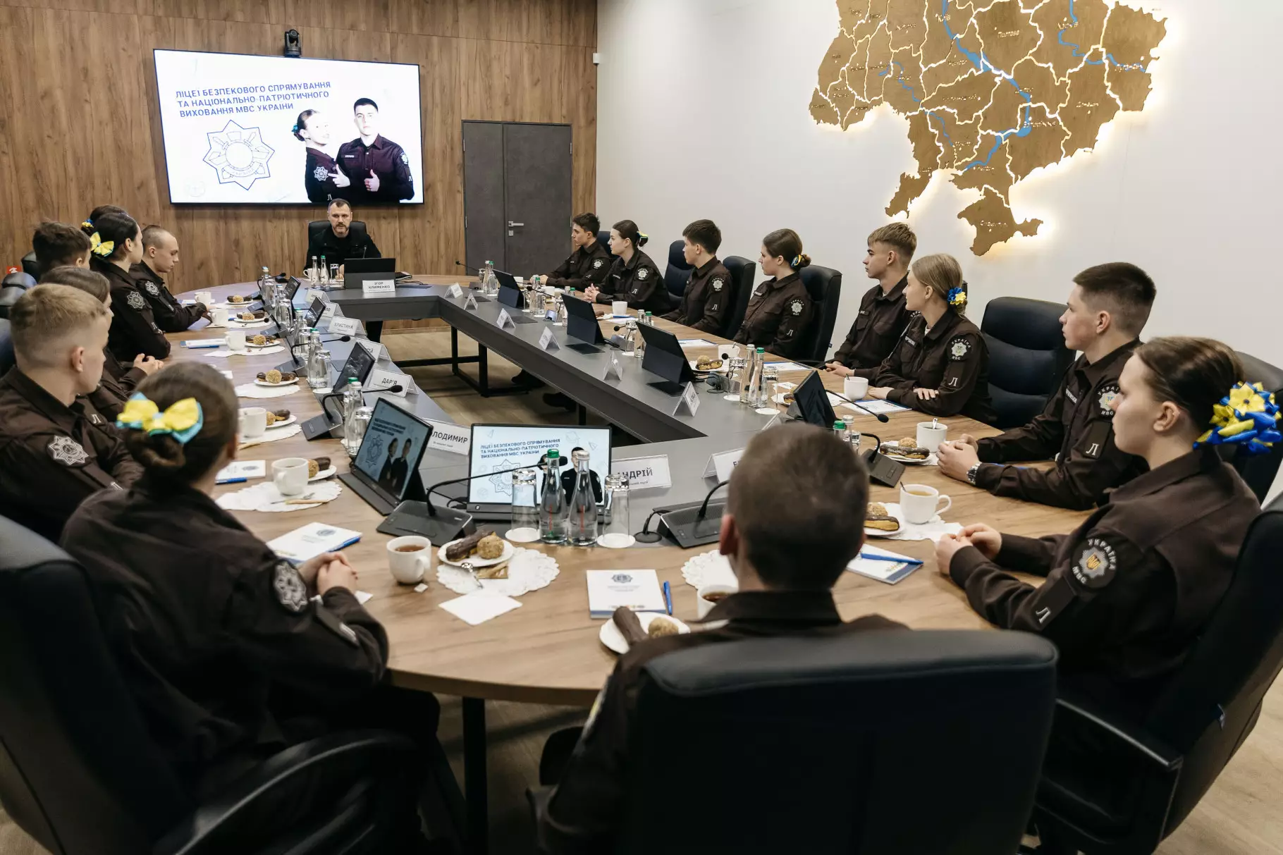 Міністр внутрішніх справ України Ігор Клименко зустрівся з вихованцями ліцеїв безпекового спрямування та національно-патріотичного виховання МВС з нагоди другої річниці створення цих закладів. Під час зустрічі ліцеїсти побували у комунікаційному центрі Служби 112 та Ситуаційному центрі МВС, а також поспілкувалися з Главою МВС про навчання, саморозвиток і майбутню професійну реалізацію.