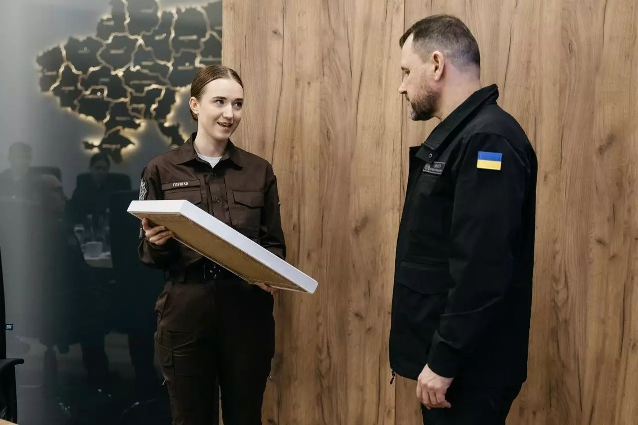 «Ця картина символізує щасливу долю. Ми хочемо подарувати її вам від усіх вихованців ліцеїв безпекового спрямування та національно-патріотичного виховання і подякувати вам і усім вашим колегам за створення цих навчальних закладів».