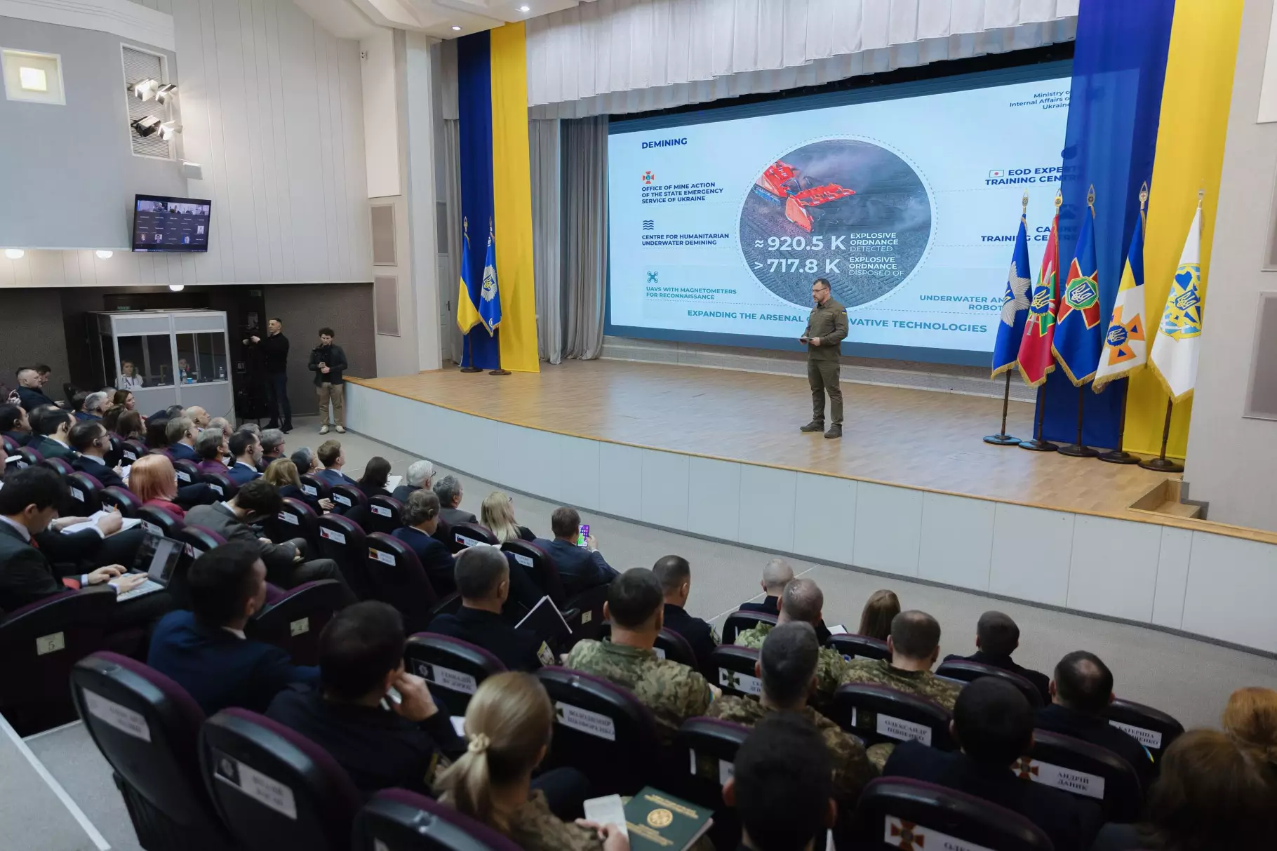 Також Глава МВС розповів про титанічну роботу працівників ДСНС та Національної поліції, які щоденно ліквідовують наслідки ворожих атак, розміновують території забруднені вибухонебезпечними предметами та проводять евакуацію населення.