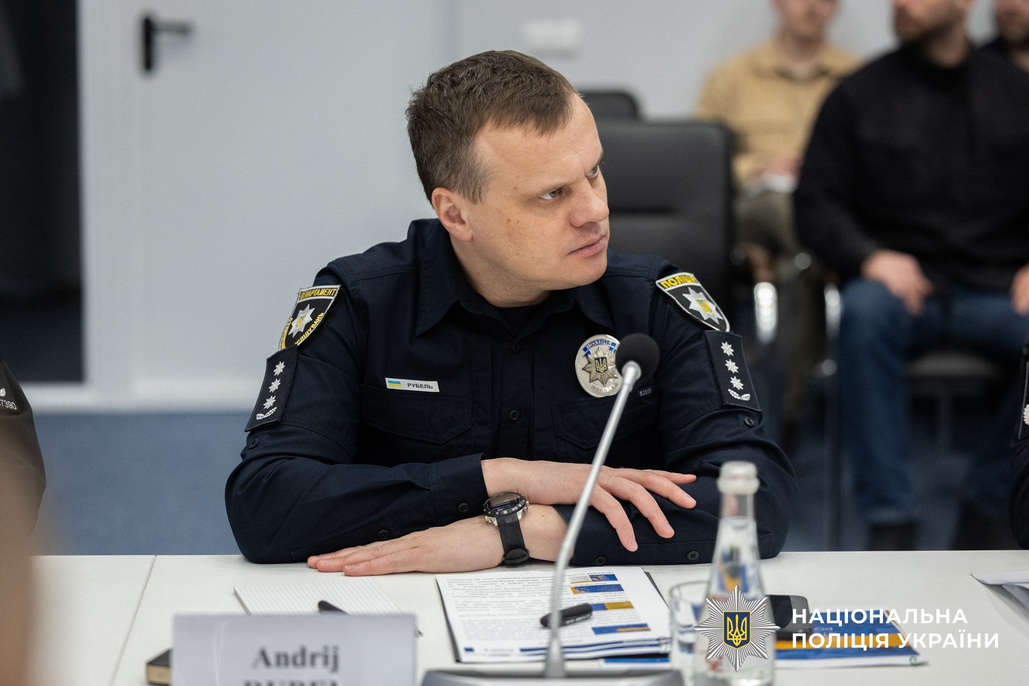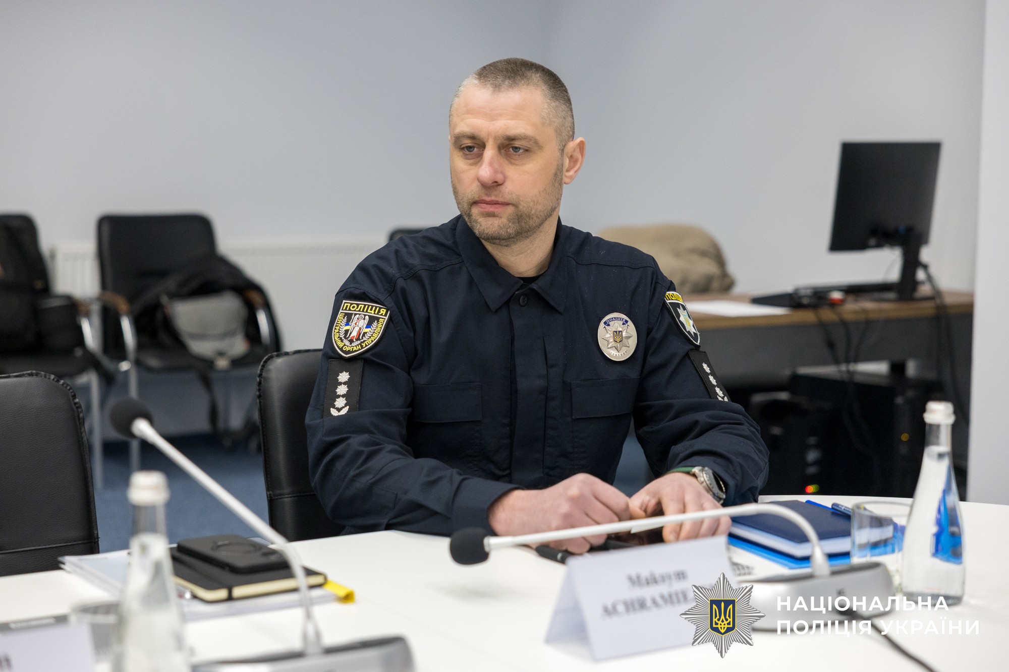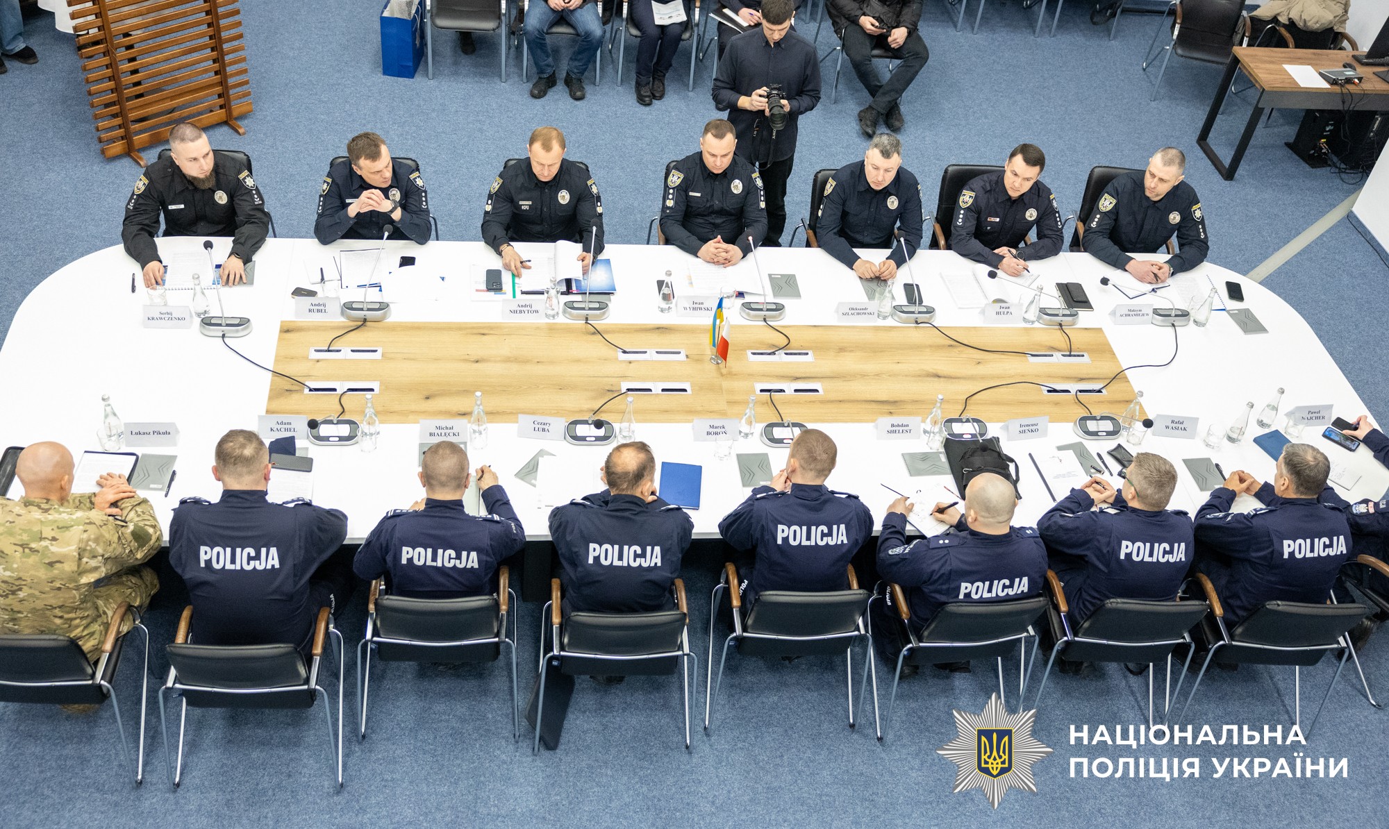 Українську сторону також представляли: заступник Голови Нацполіції – начальник кримінальної поліції Андрій Нєбитов, начальник Департаменту стратегічних розслідувань Андрій Рубель, начальник Департаменту превентивної діяльності Максим Ахрамєєв, тимчасово виконувач обов’язків начальника Департаменту міжнародного поліцейського співробітництва – начальник управління взаємодії з Інтерполом та Європолом Іван Гульпа, начальник Управління авіації та поліції на воді Сергій Кравченко.
