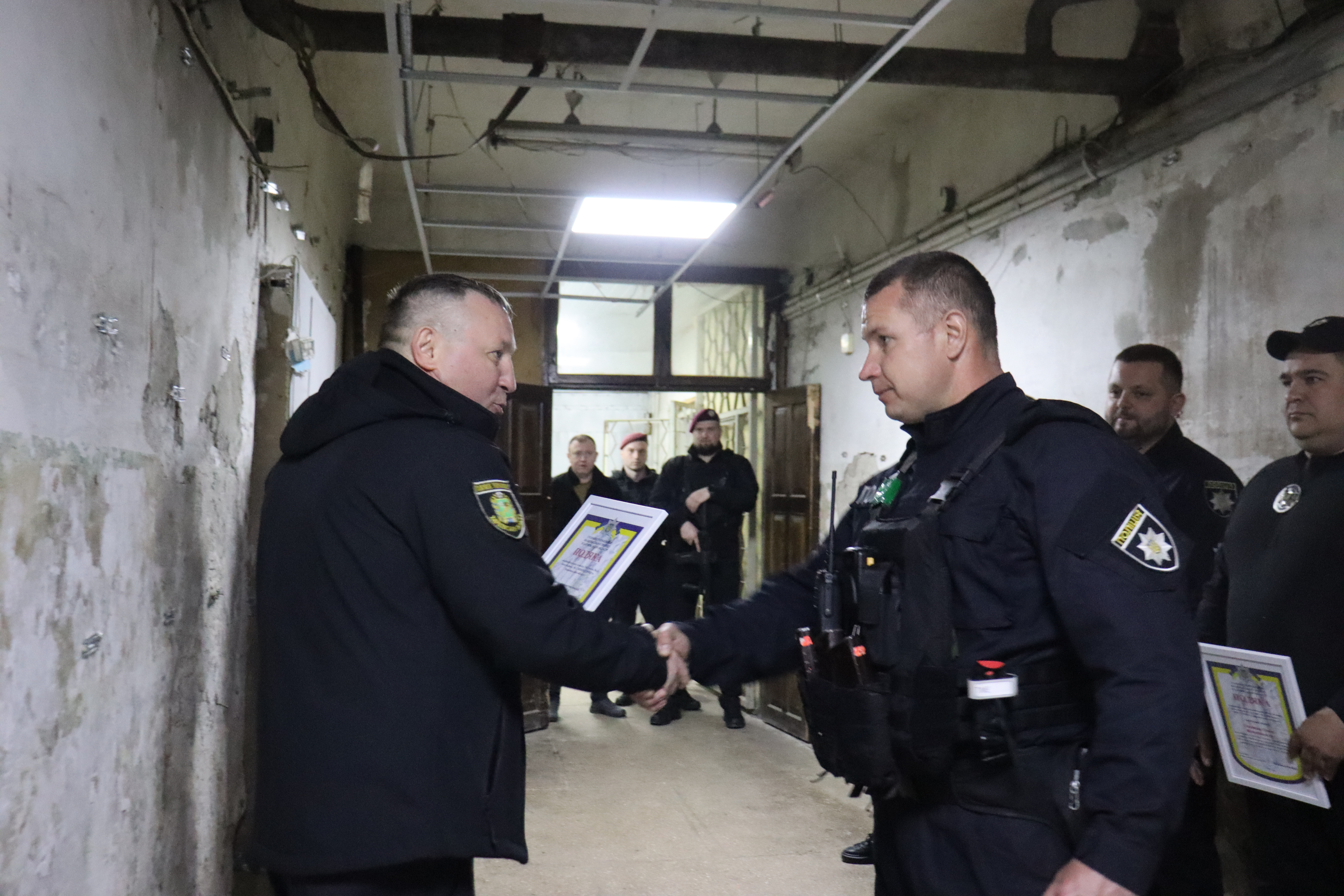 Володимир Тимошко подякував поліцейським за проявлену мужність й самовідданість та вручив грамоти.