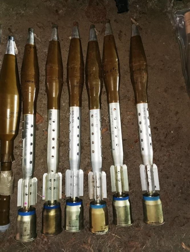 Загалом у фігуранта вилучено два автомати, близько 30 гранат, пристрій для безшумної стрільби, більше 3,7 тисяч набоїв, майже 5 кг тротилу, 3 ручних гранатомети, пістолет, димові шашки, більше 60 акумулятивних реактивних снарядів різного типу, 4 окопні снаряди та 12 стартових порохових зарядів до ручних гранатометів.