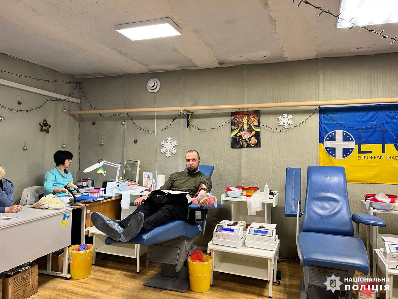 Поліцейські Харківщини після чергування чи у свій вихідний приходять до пункту здачі крові, щоб допомогти пораненим і травмованим побратимам.