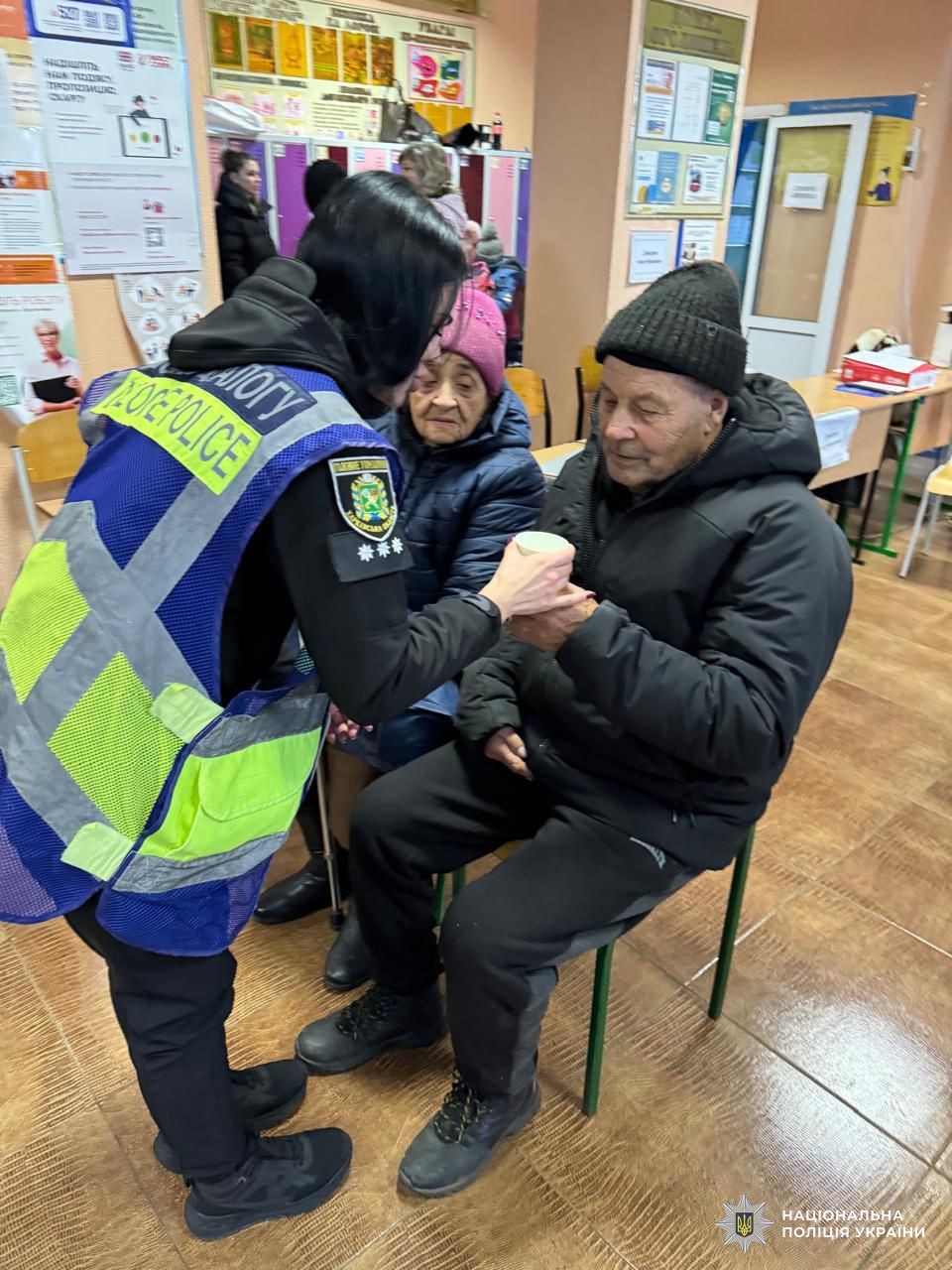 Під час несення служби поліцейські превентивної комунікації відділу превенції Харківського районного управління поліції № 3 надають потрібну допомогу особам, які евакуйовані до більш безпечного місця та постійно забезпечують правопорядок та публічну безпеку.
