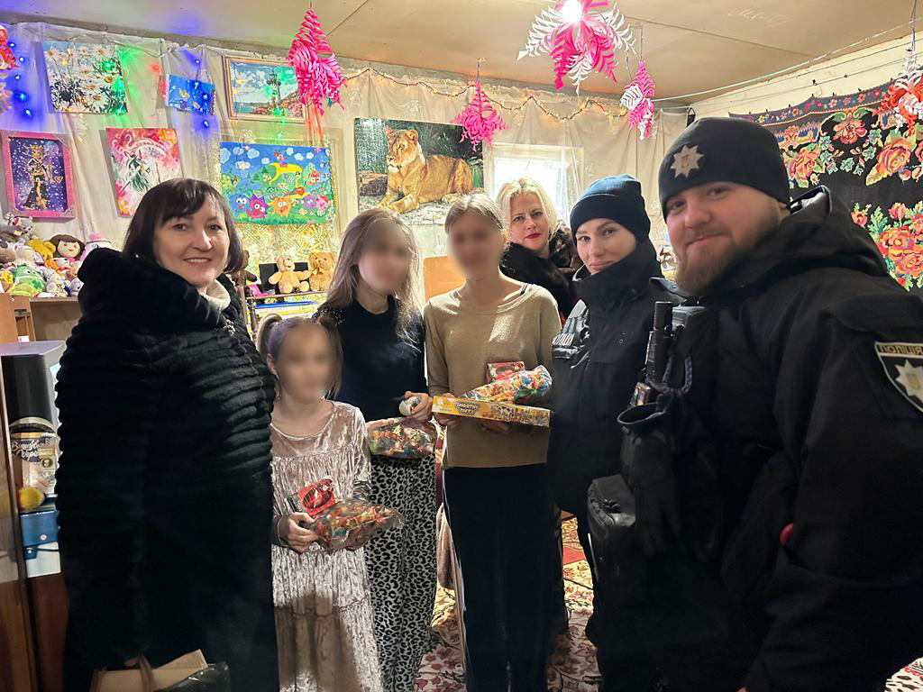 Днями працівники сектору ювенальної превенції відділу превенції ХРУП № 1 спільно з працівниками служби у справах дітей та відділу соціальної роботи Основ'янського району відвідали родини, які опинилися в складних життєвих обставинах, в яких вчинялося домашнє насильство, та сім’ї опікунів. Родинам привезли солодощі, дитячі іграшки.