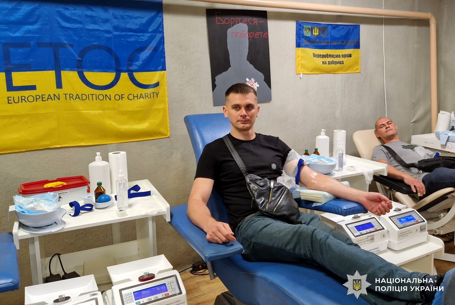 Близько 50 правоохоронців здали кров в «Обласному центрі служби крові Харкова». Усіх донорів обстежили на стан здоров’я. Також поліцейські здійснили донацію тромбоцитів для негайного переливання тяжкохворим.
