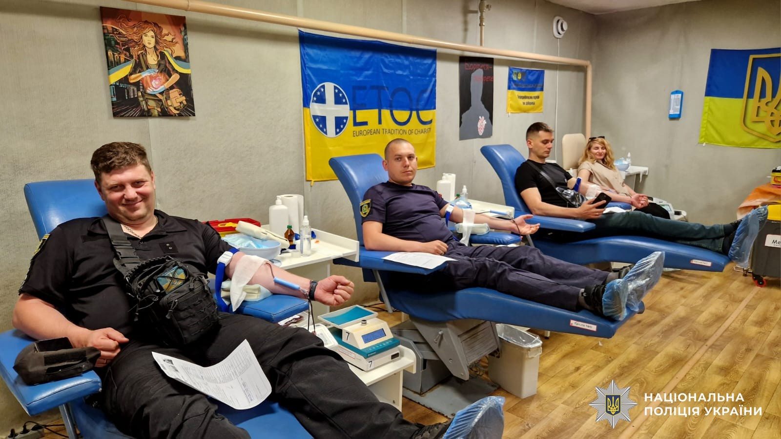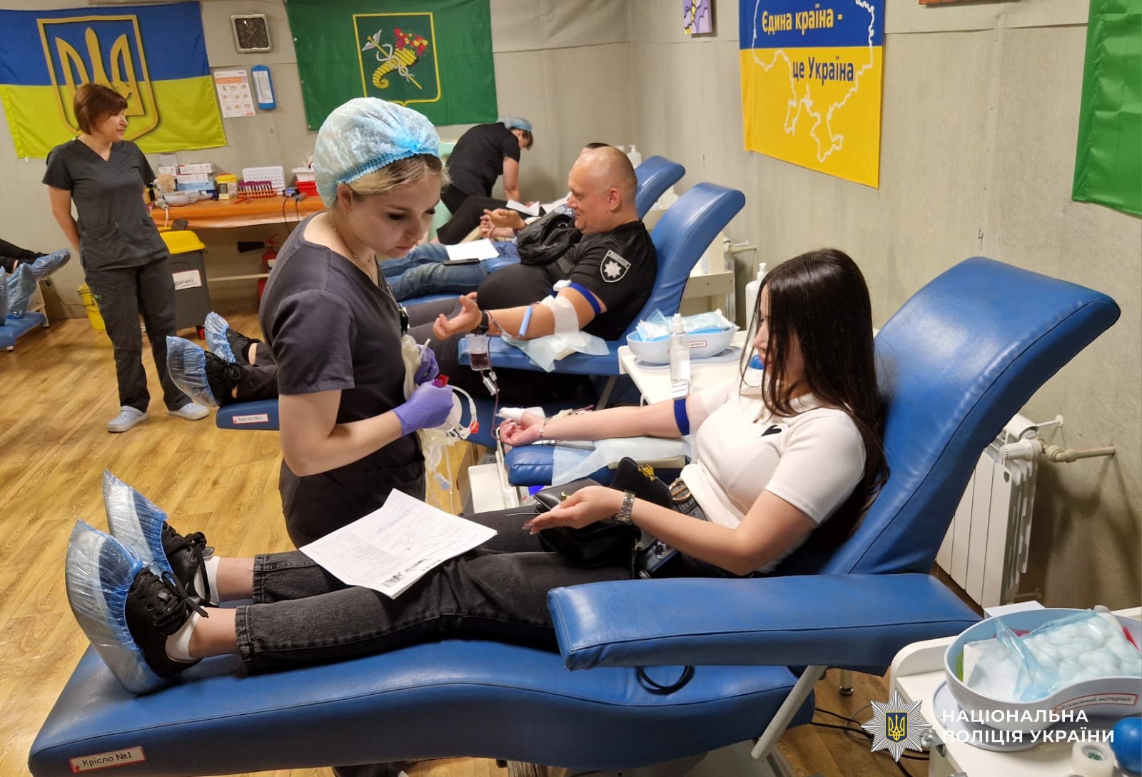 Донорство під час війни - один із надзвичайно важливих та ефективних засобів порятунку життя наших поранених воїнів. Кров різних груп щоденно потрібна лікарям для якісної допомоги хворим. Поліцейські закликають усіх небайдужих долучитися до донорства, адже кожна крапля крові рятує життя наших поранених військовослужбовців та наближає перемогу.