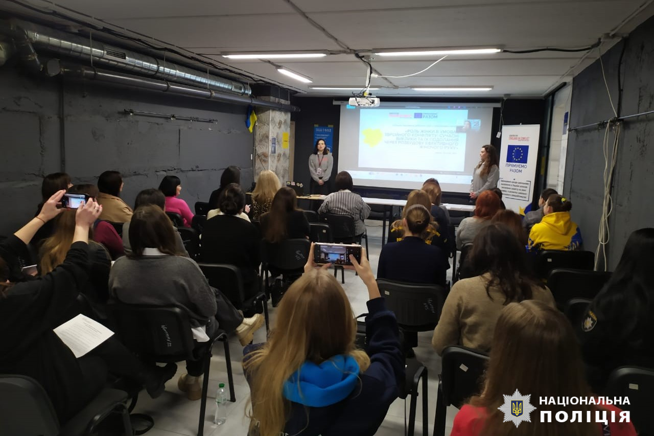 Також поліцейська розповіла про основні функції жінки-поліцейського в умовах збройного конфлікту, виклики, з якими вони стикаються, та приклади їх успішної діяльності.