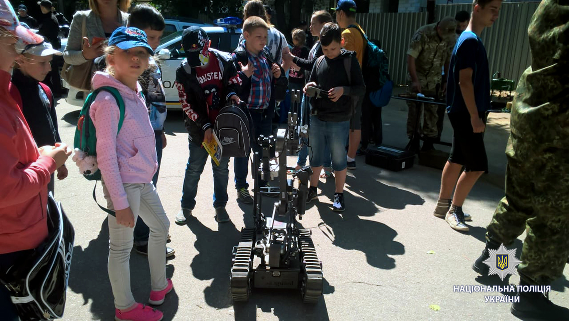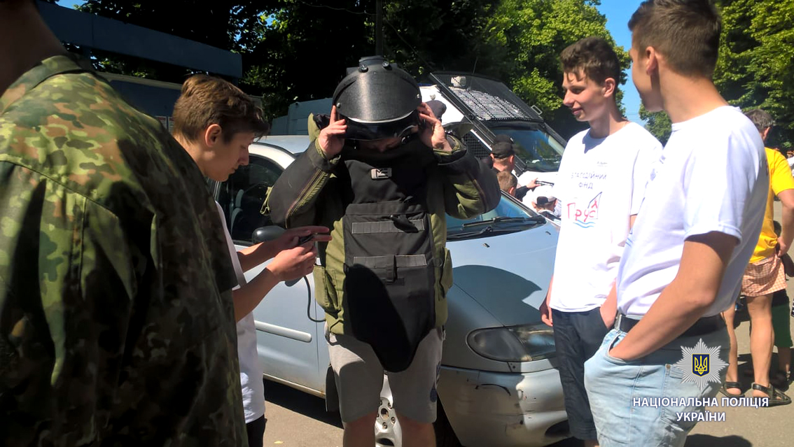 Дуже гамірно було біля стендів вибухо-технічного управління і батальйону особливого призначення. Юні гості не залишили без уваги і спорядження поліцейських та рятівників. До брандспойту вишикувалася черга з бажаючих покерувати водяним струменем.