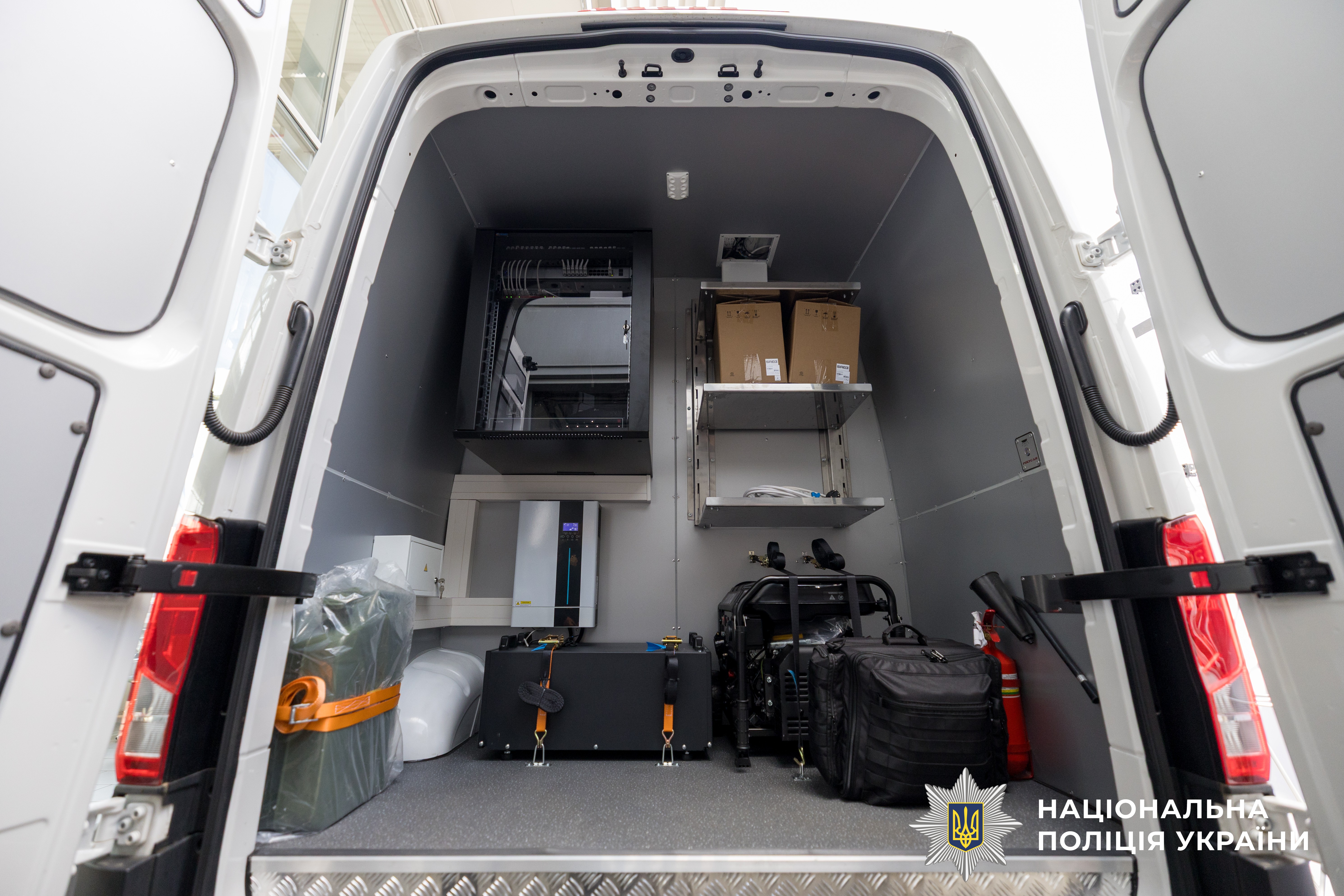 Він додав, що передані транспортні засоби - це так звані пересувні пункти поліції. Їх використовують для того, аби забезпечити діяльність поліції у віддалених місцях, де відсутній зв’язок та інфраструктура. Автомобілі Volkswagen Crafter - універсальні і вже довели свою мобільність, зручність та надійність. Вони обладнані різними засобами зв’язку, зокрема, Starlinkom, звичайною ІР-телефонією, раціями, комп’ютерною технікою, відеокамерами, тобто всім необхідним, аби поліцейські могли ефективно виконувати свої поліцейські функції. Крім того, ці мобільні офіси забезпечені резервними джерелами живлення – генератором та блоком безперебійного живлення, який забезпечує автономну роботу цього автомобіля у будь-якому місці. Також, у кожному авто є аптечка для надання швидкої та ефективної допомоги в кризових ситуаціях.