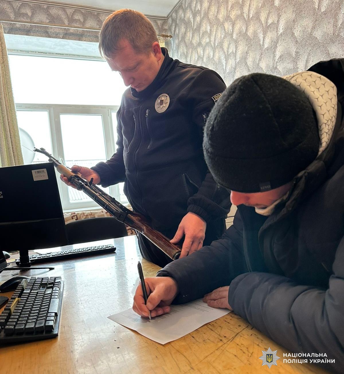 Чоловік знайшов зброю під час бойових дій поблизу села Сотницький Козачок. Дізнавшись, що офіційне декларування дає право на зберігання зброї, звернувся до поліції.