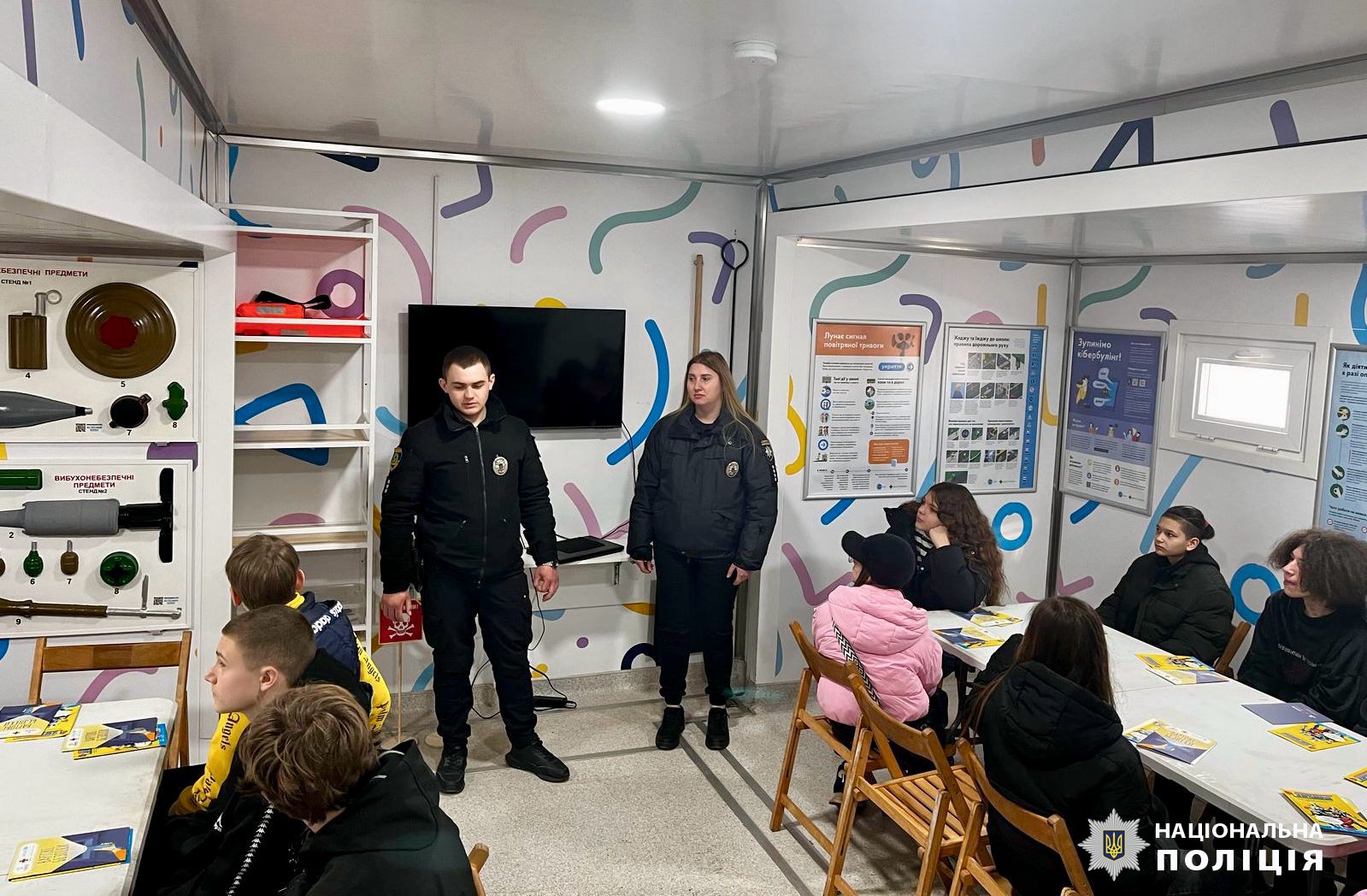 За допомогою інтерактивних інструментів та можливостей мобільного класу вони провели цікавий урок із правил дорожнього руху, надання першої медичної допомоги, користування вогнегасниками та гасіння пожеж. Окрім цього, діти отримали важливу інформацію про дії у разі виявлення вибухонебезпечних предметів і надзвичайних ситуацій у побуті. Також правоохоронці ознайомили школярів з їхніми правами та обов'язками.