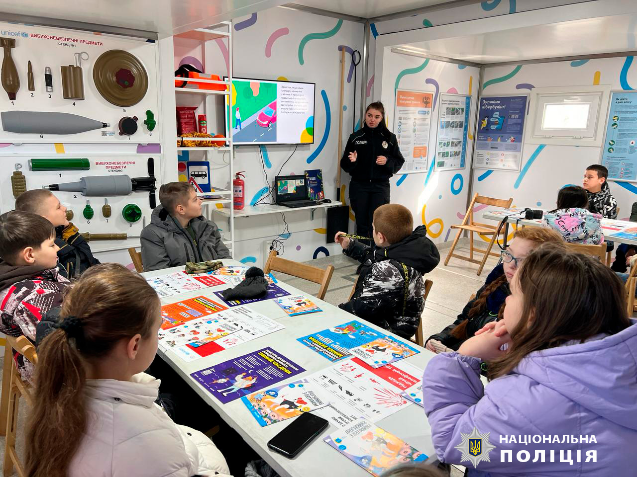 Під час заходу працівники поліції та ДСНС продемонстрували ліцеїстам мобільний клас безпеки - автомобіль, оснащений всім необхідним для занять з дітьми щодо безпечної поведінки під час війни. У ньому поліцейські разом із рятувальниками продемонстрували макети основних різновидів сучасних боєприпасів, розповіли про небезпеку, яку несуть такі знахідки та нагадали основні правила безпечного поводження.