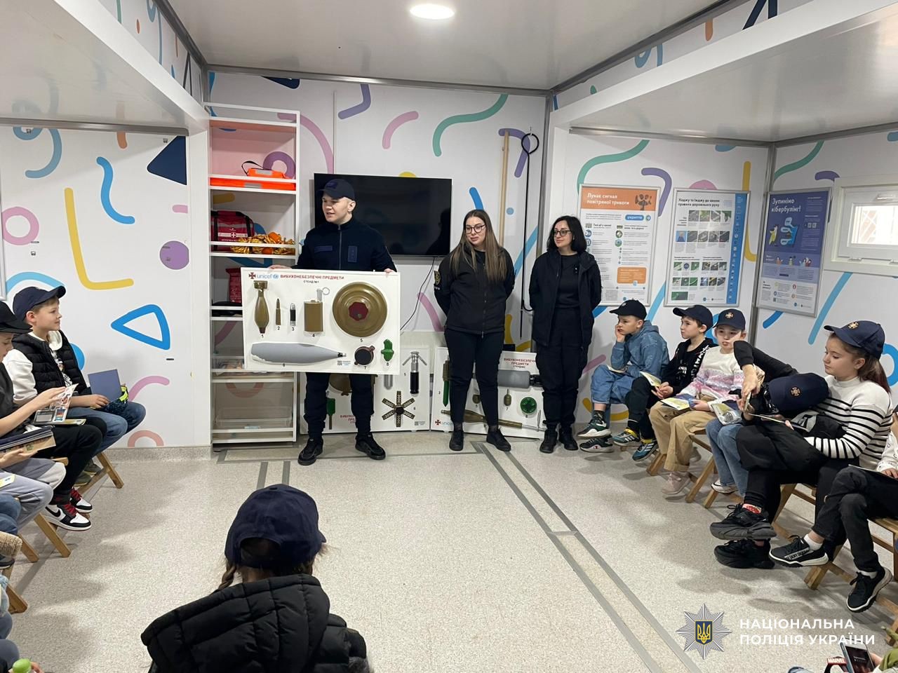 Поліцейські нагадали дітям про основи мінної безпеки, правила поведінки при виявленні вибухонебезпечних предметів та заходи безпеки при виникненні надзвичайних ситуацій. Також школярам розповіли про надання домедичної допомоги.