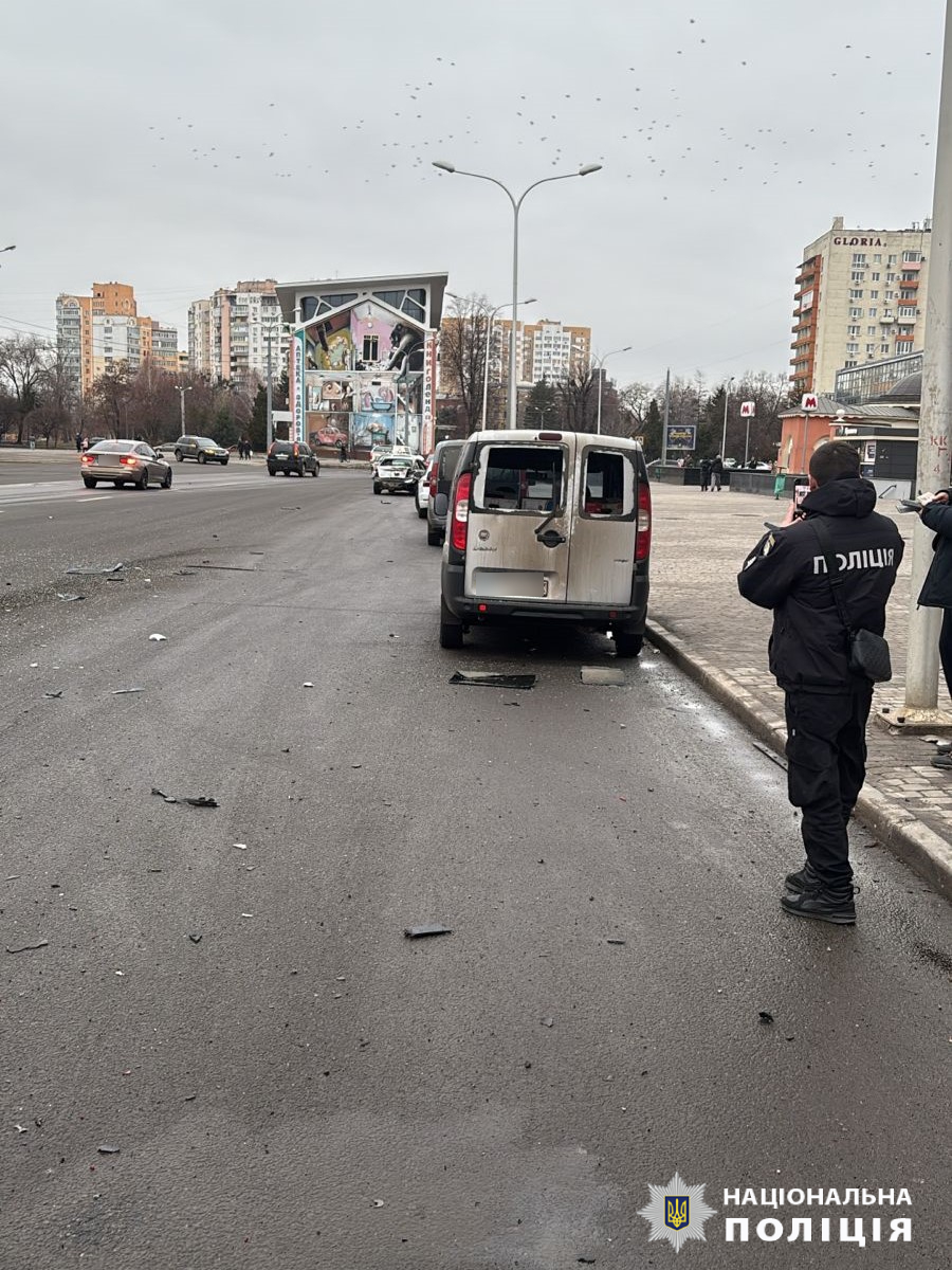 О 15:10 ворожий БпЛА "Молнія" влучив в дорожнє покриття у місті Харкові. Постраждали троє людей. Пошкоджено 5 автомобілів, скління на стадіоні.