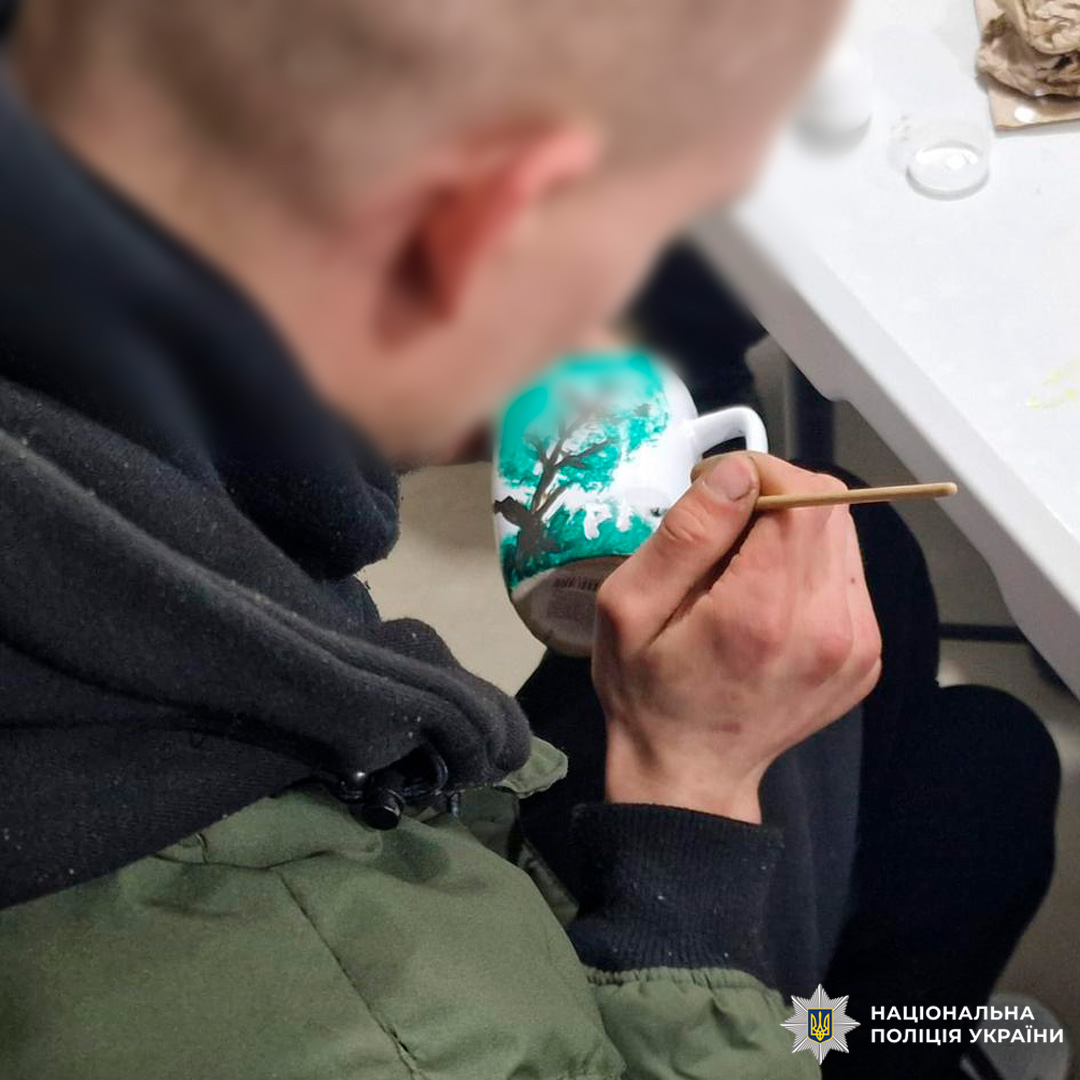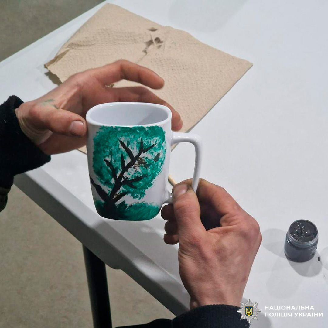Учасники працювали з чашкою «символом», як ресурсом внутрішньої підтримки. Кожен розмальовував свою чашку, вкладаючи в неї особисті сенси: силу, віру, спогади про дім, підтримку близьких та побратимів.