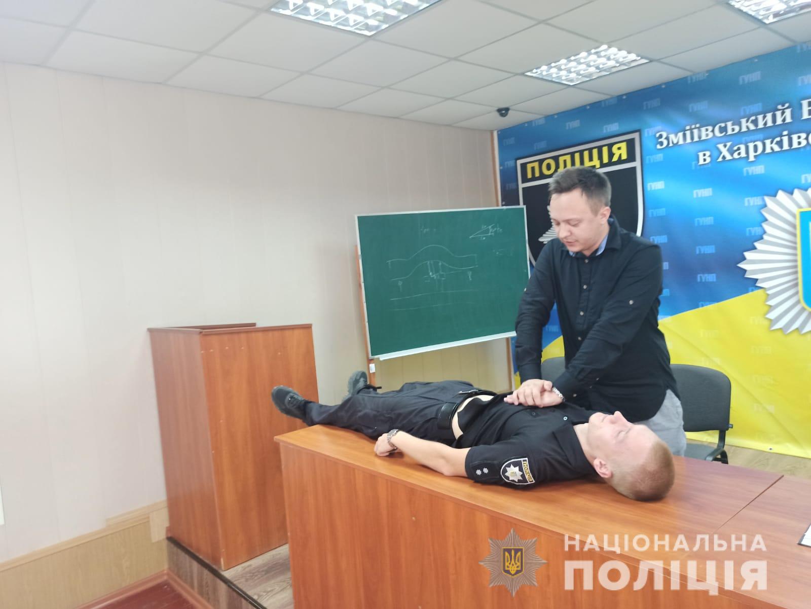 Медики Зміївської районної лікарні навчали особовий склад відділу поліції №2 Чугуївського райуправління поліції надавати первинну допомогу постраждалим.