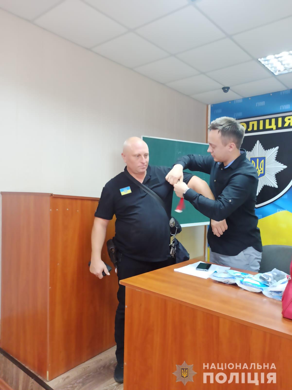 Лікар-травматолог Олександр Кононенко та лікар-хірург Євген Усенко провели для поліцейських практичні заняття, на яких розповіли про способи зупинки кровотечі, методи накладання турнікета та тиснучої пов'язки.