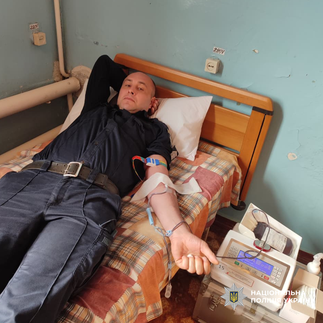 Поліцейські закликають громадян долучатися до добровільної здачі крові.
