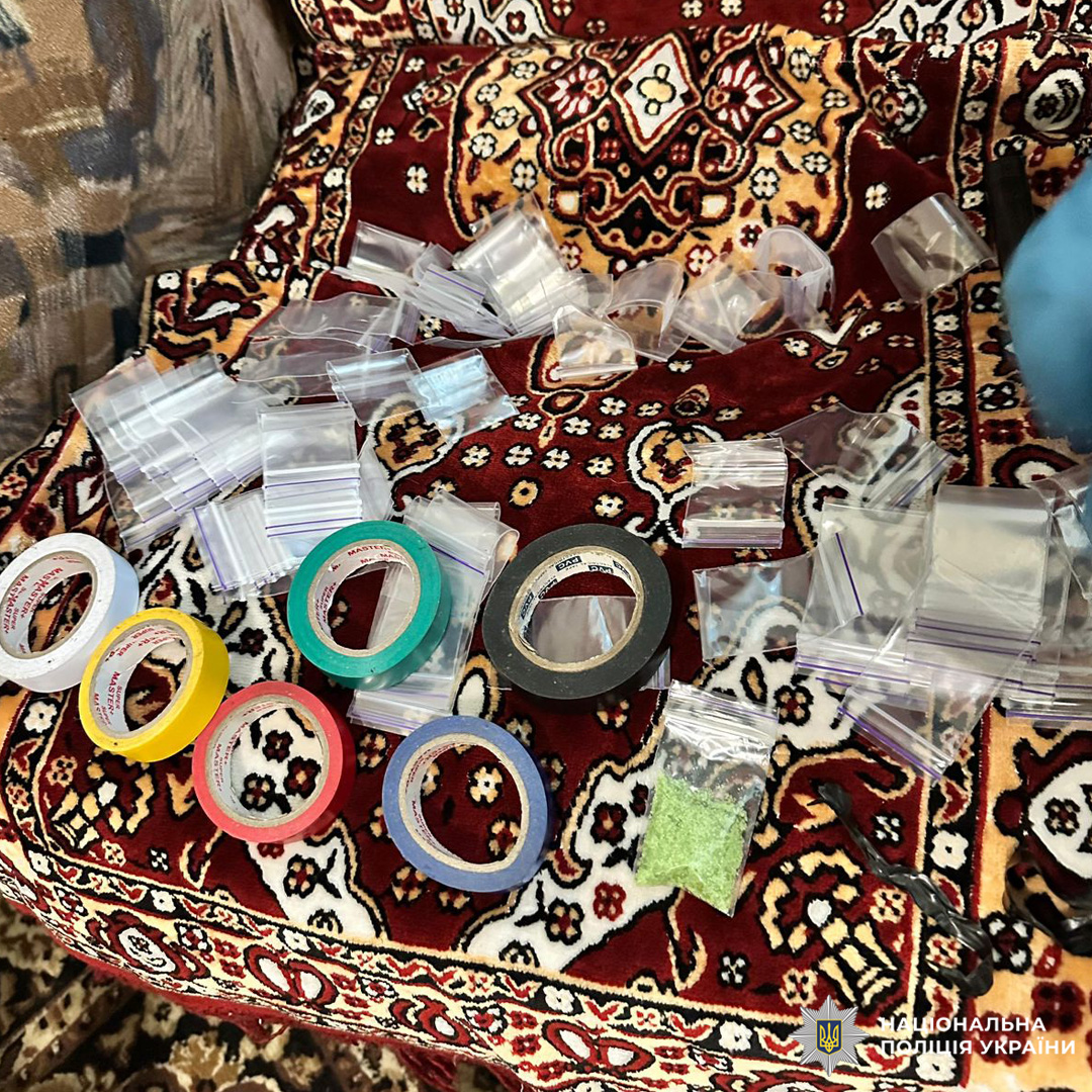 Поліцейські спільно з працівниками СБУ провели санкціоновані обшуки за місцем мешкання зловмисника та в його гаражі. В результаті вилучено близько 60 доз психотропної речовини, знаряддя для фасування. Крім цього, в телефоні 34-річного чоловіка виявлено фотографії та координати місць останніх «закладок». Поліцейські виїхали на вказані місця та вилучили згортки з психотропною речовиною.