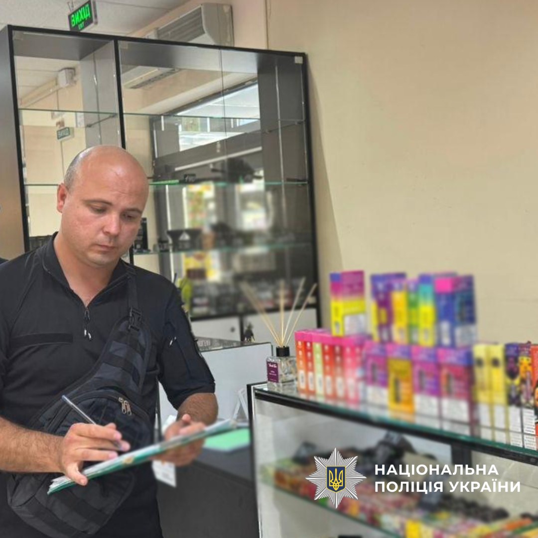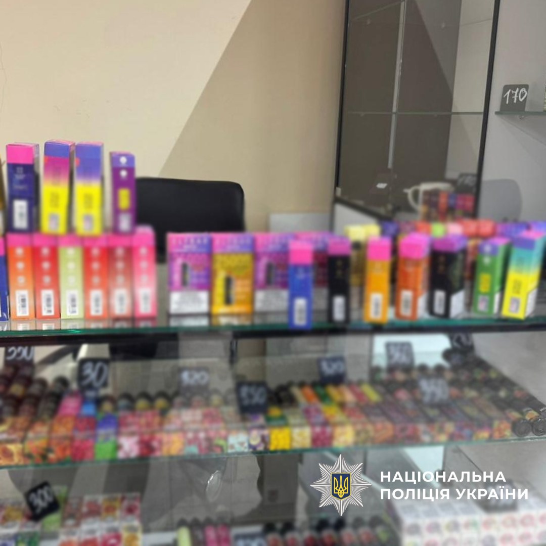 Під час обшуку торговельної точки поліцейські вилучили 35 електронних цигарок та 23 суміші для електронних цигарок без марок акцизного податку. Загальна вартість вилучених виробів становить близько 28 тисяч гривень.