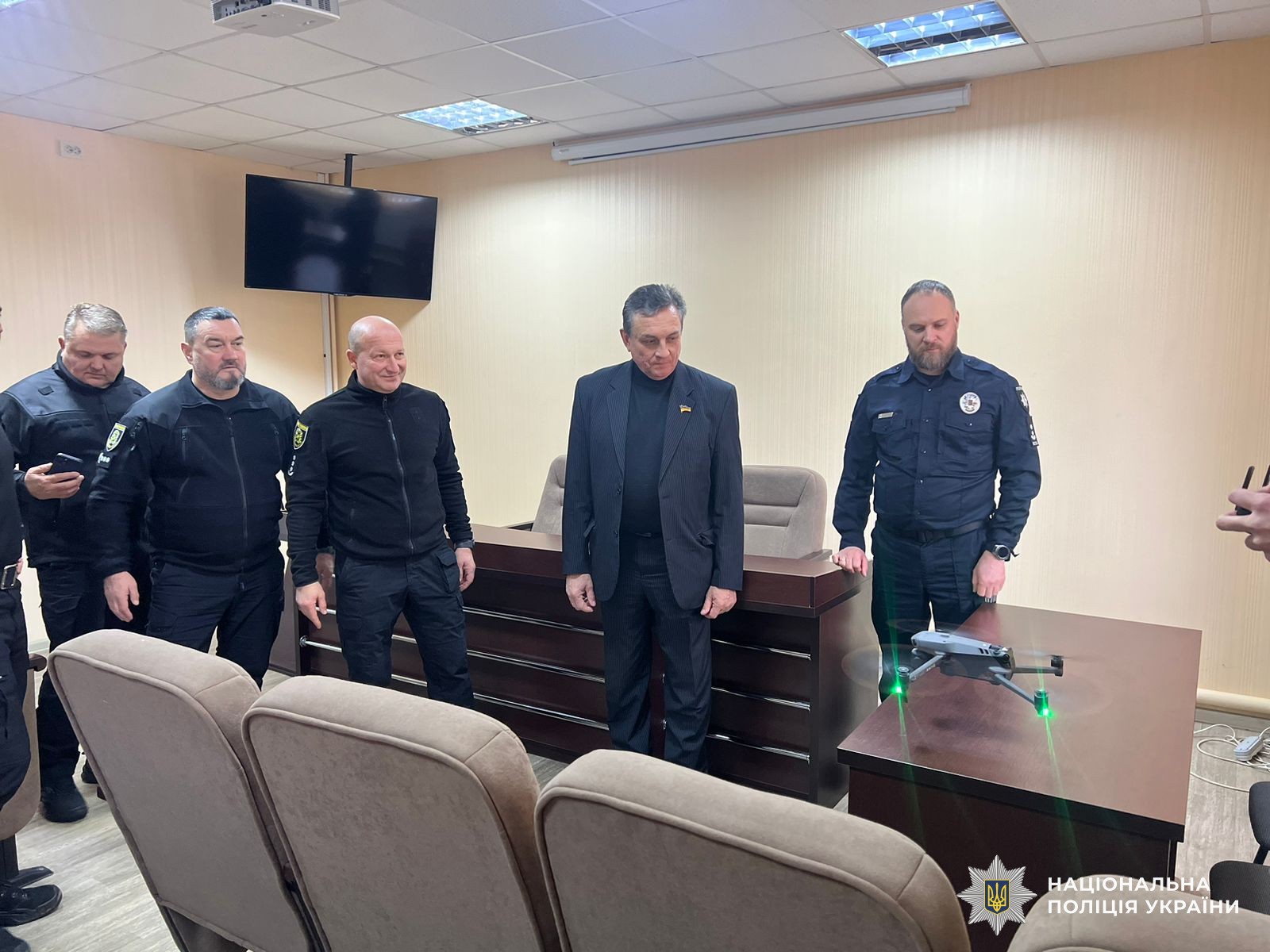 В Мереф’янській ТГ міський голова Веніамін Сітов передав поліцейським офіцерам громади квадрокоптер, який був придбаний за кошти з субвенції.