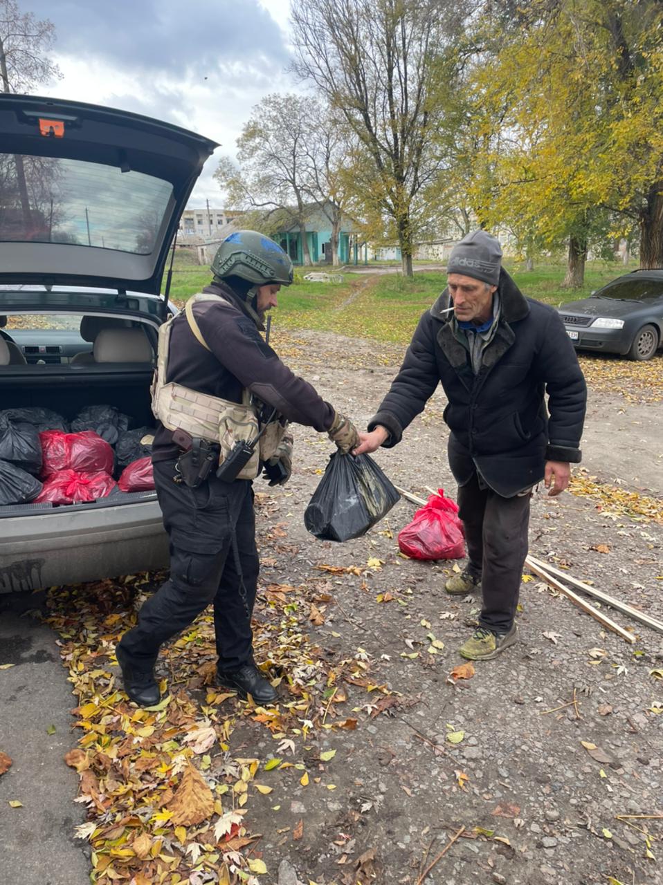 Поліцейські спільно з волонтерами відвідали населені пункти Базаліївку, Коробочкине та Леб'яже, де від обстрілів рф значно пошкоджена інфраструктура та більшість житлових будинків. Правоохоронці доставили цвяхи та будівельну плівку. Окрім будівельних матеріалів, для потреб громадян передали генератор.