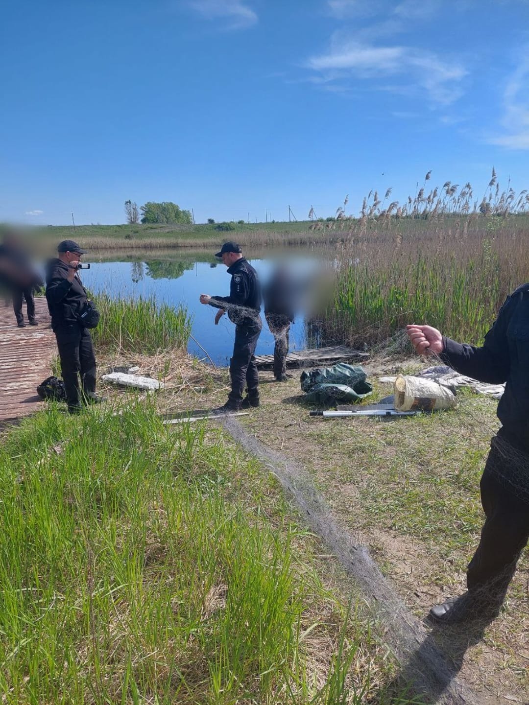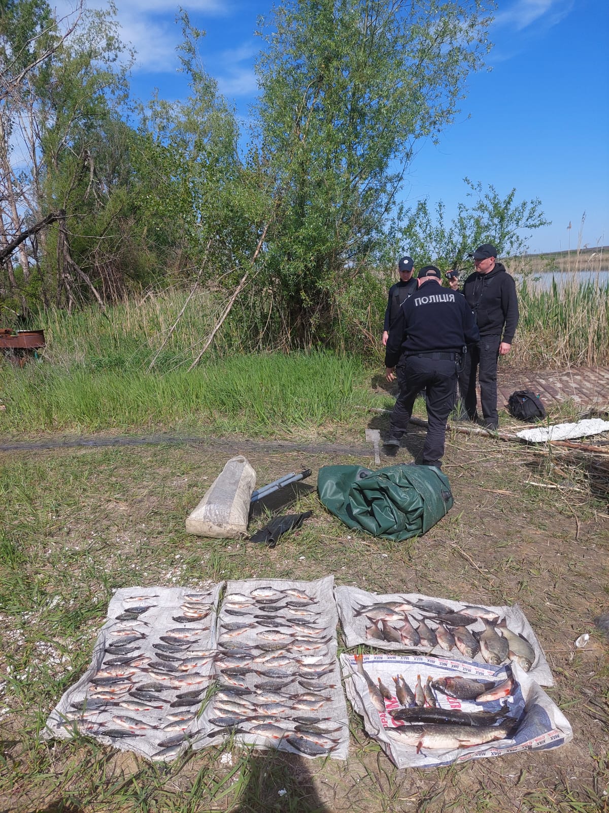 Поліцейські вилучили 4 сітки, надувний човен та близько 100 одиниць риби.