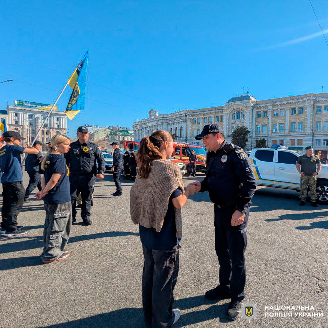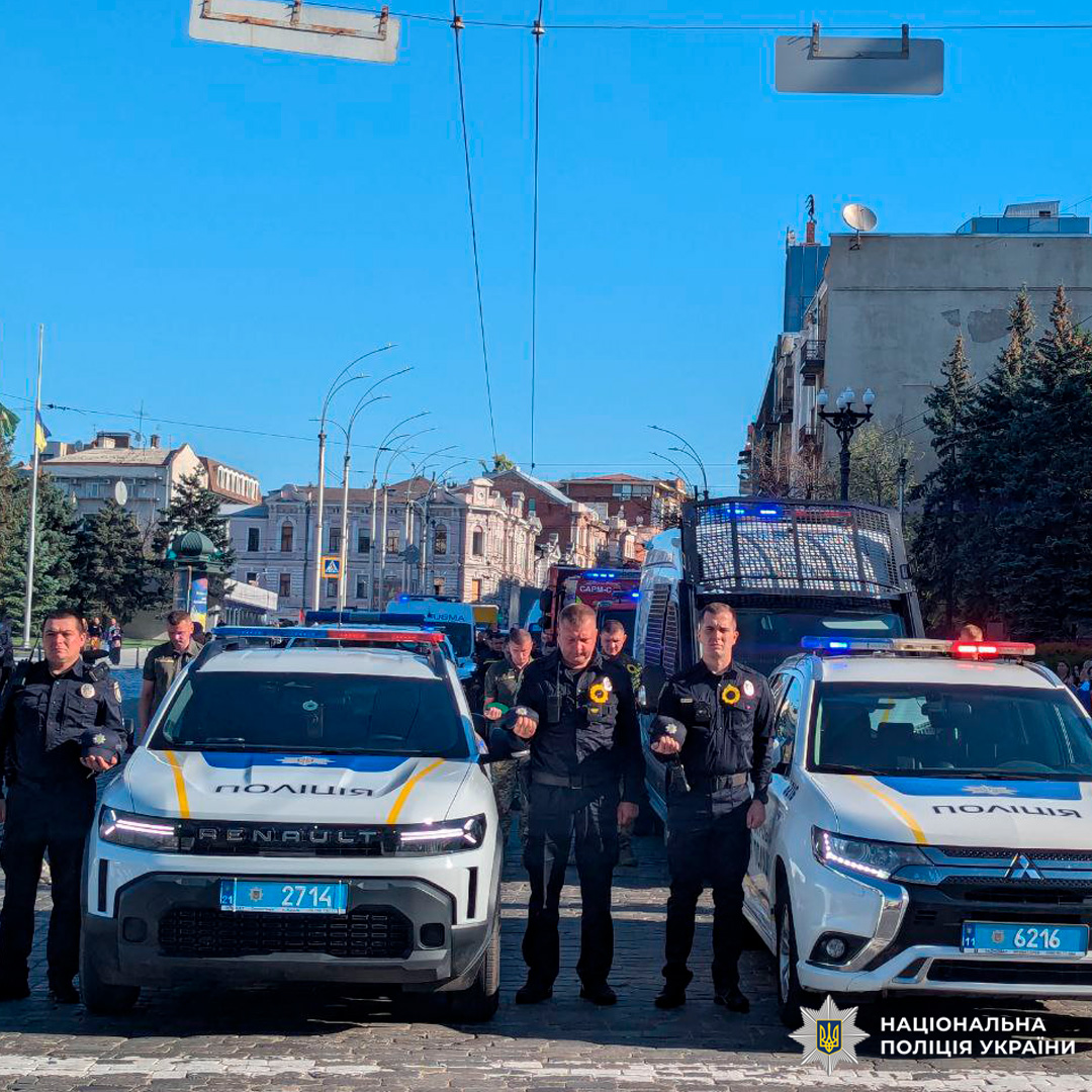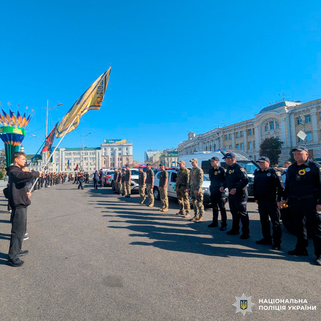 Колона зі спеціального транспорту, сформована з службових автомобілів від кожного підрозділу, рушила центральною вулицею міста. Усі транспортні засоби рухалися з увімкненими проблисковими маячками та звуковими сиренами.
