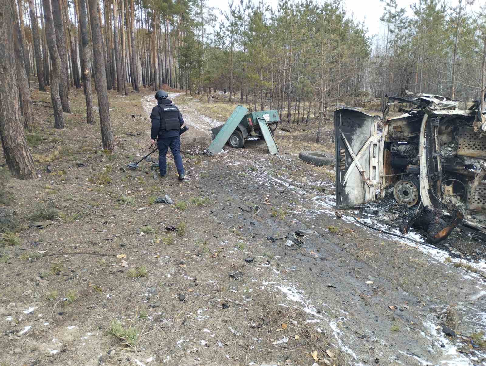 Інформація про подію надійшла до Ізюмського РУП 01 березня від виконувача обов’язків директора місцевого лісового господарства. Він повідомив, що його 43-річний працівник разом з трьома чоловіками підірвалися на міні.