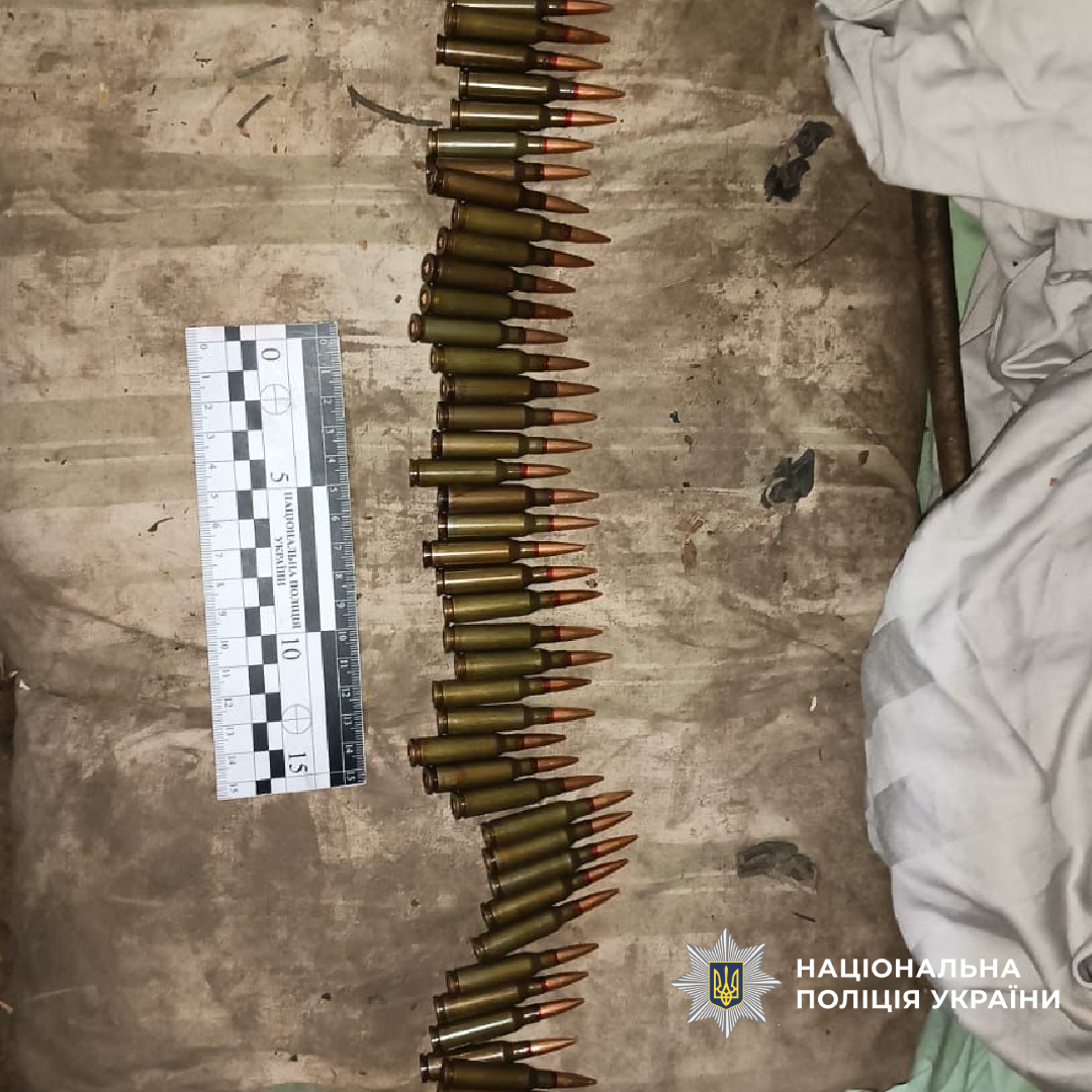 Також під час обшуків виявлено й небезпечні предмети: дві гранати «РГ-42», 14 метальних зарядів, два постріли калібру 23 мм, один метальний заряд, 92 патрони калібру 5,45 мм, два патрони калібру 5,56 мм та металевий сюрикен. Всі предмети вилучено у встановленому законом порядку.
