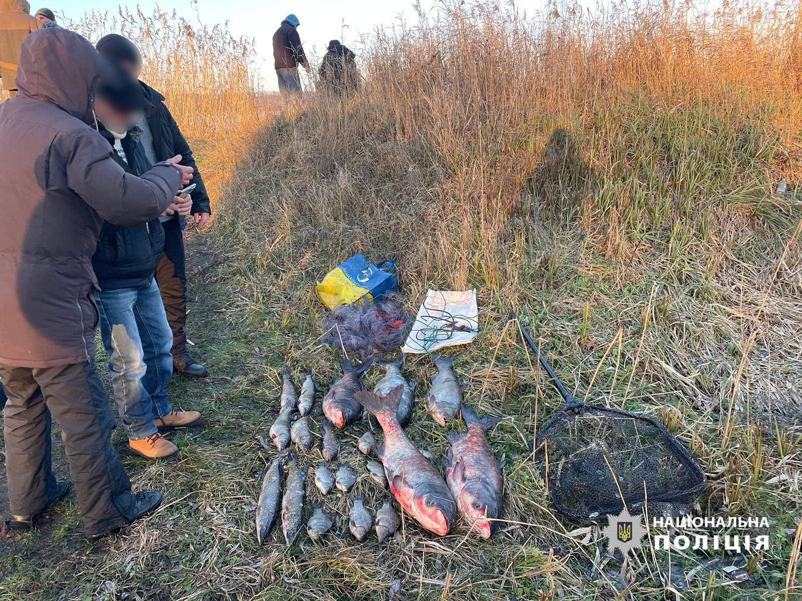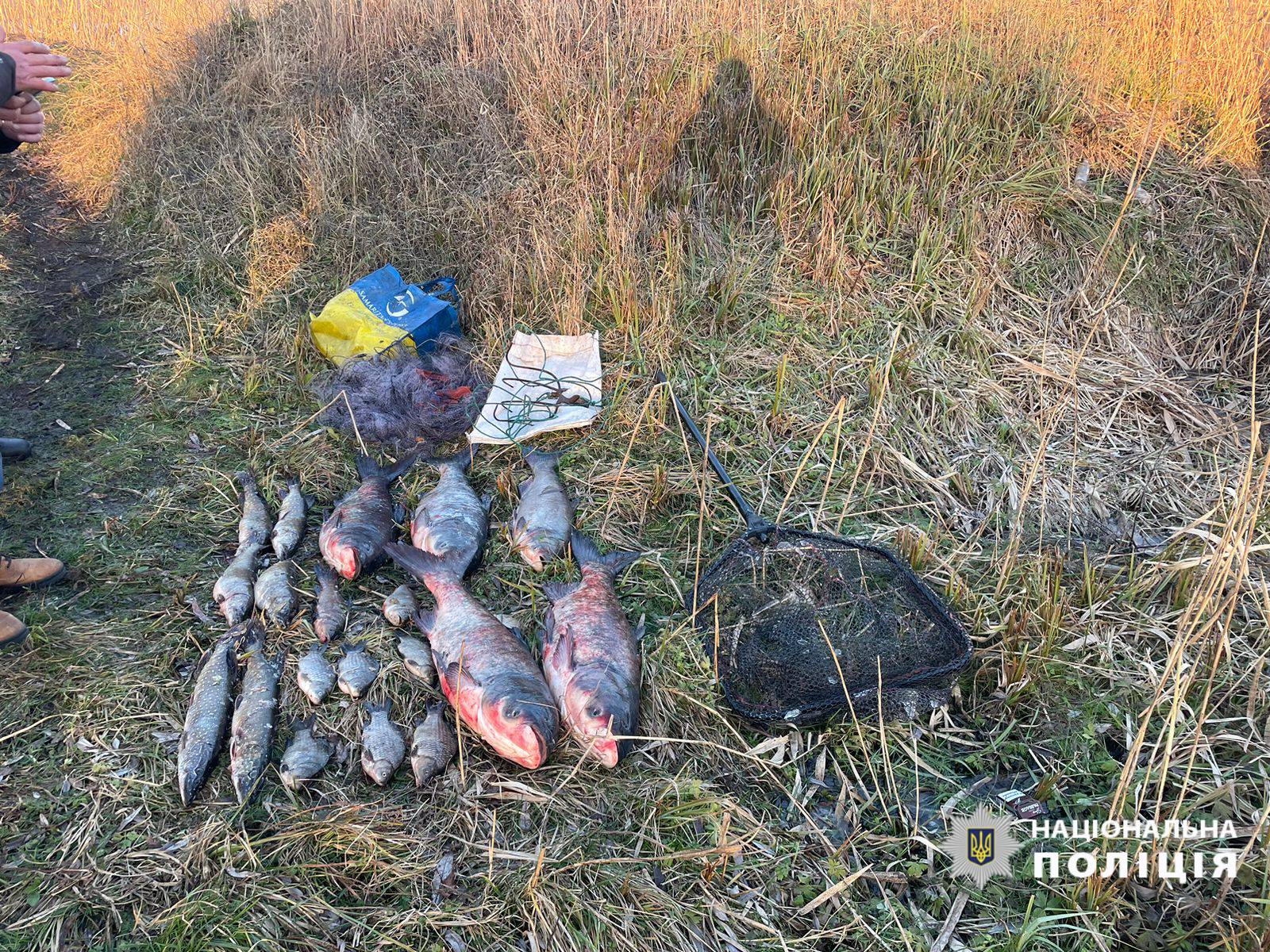 30 листопада до поліції звернувся місцевий житель та повідомив, що на Забродівському водосховищі у місті Богодухів двоє невідомих на човні виловлюють рибу.