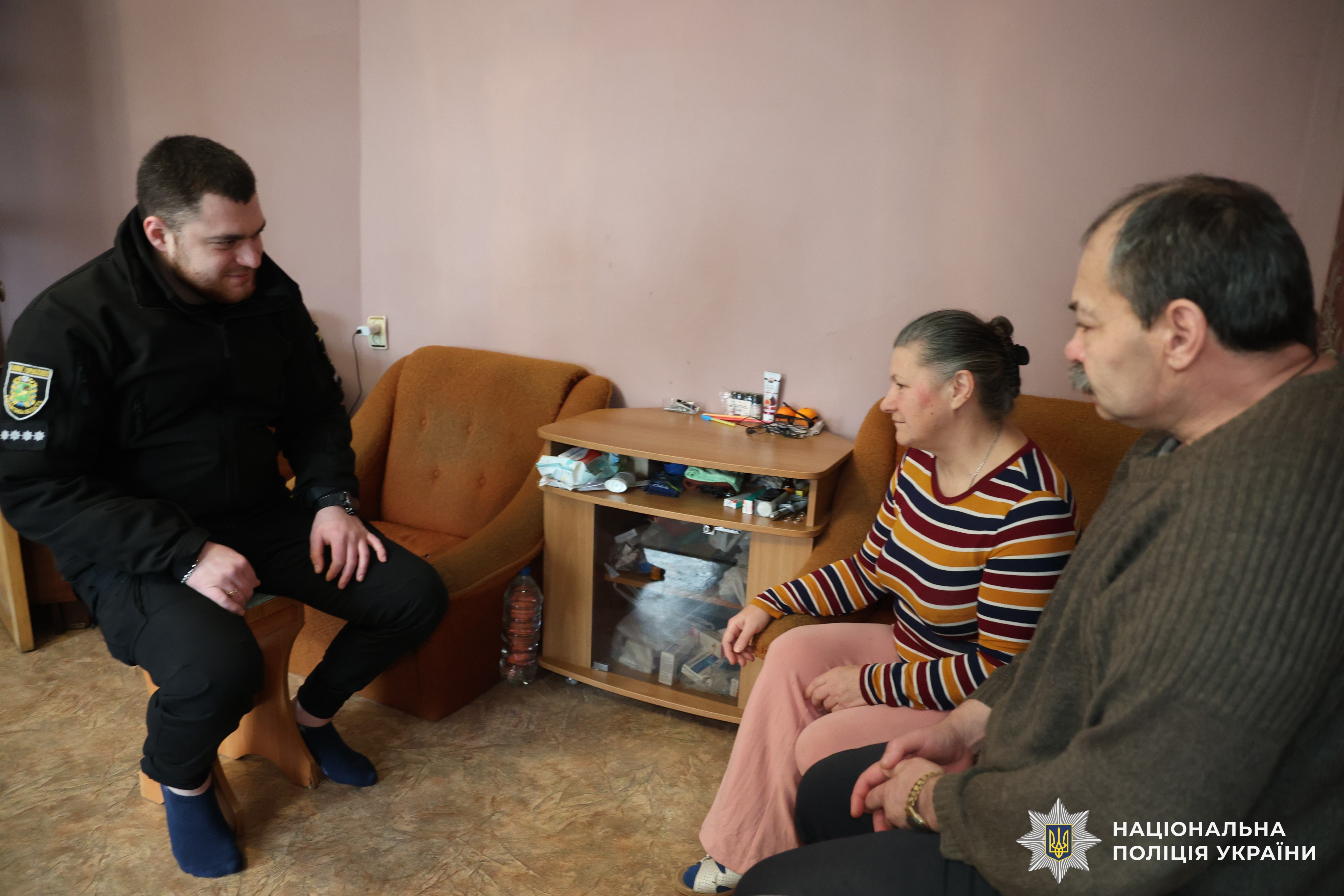 Поліцейський привітав з Різдвом родину пенсіонерів, яку у травні під час наступу росіян евакуював з міста Вовчанськ.