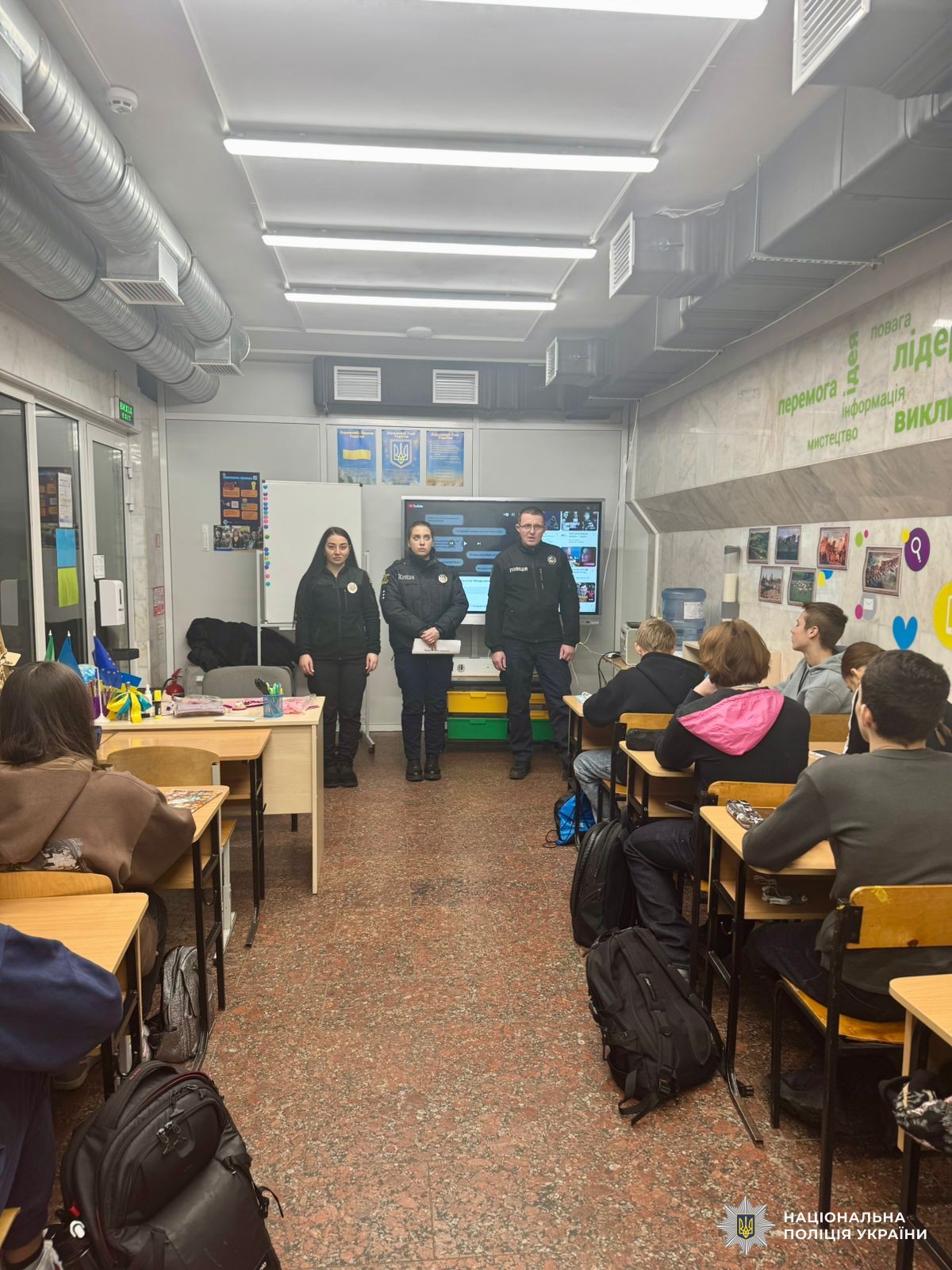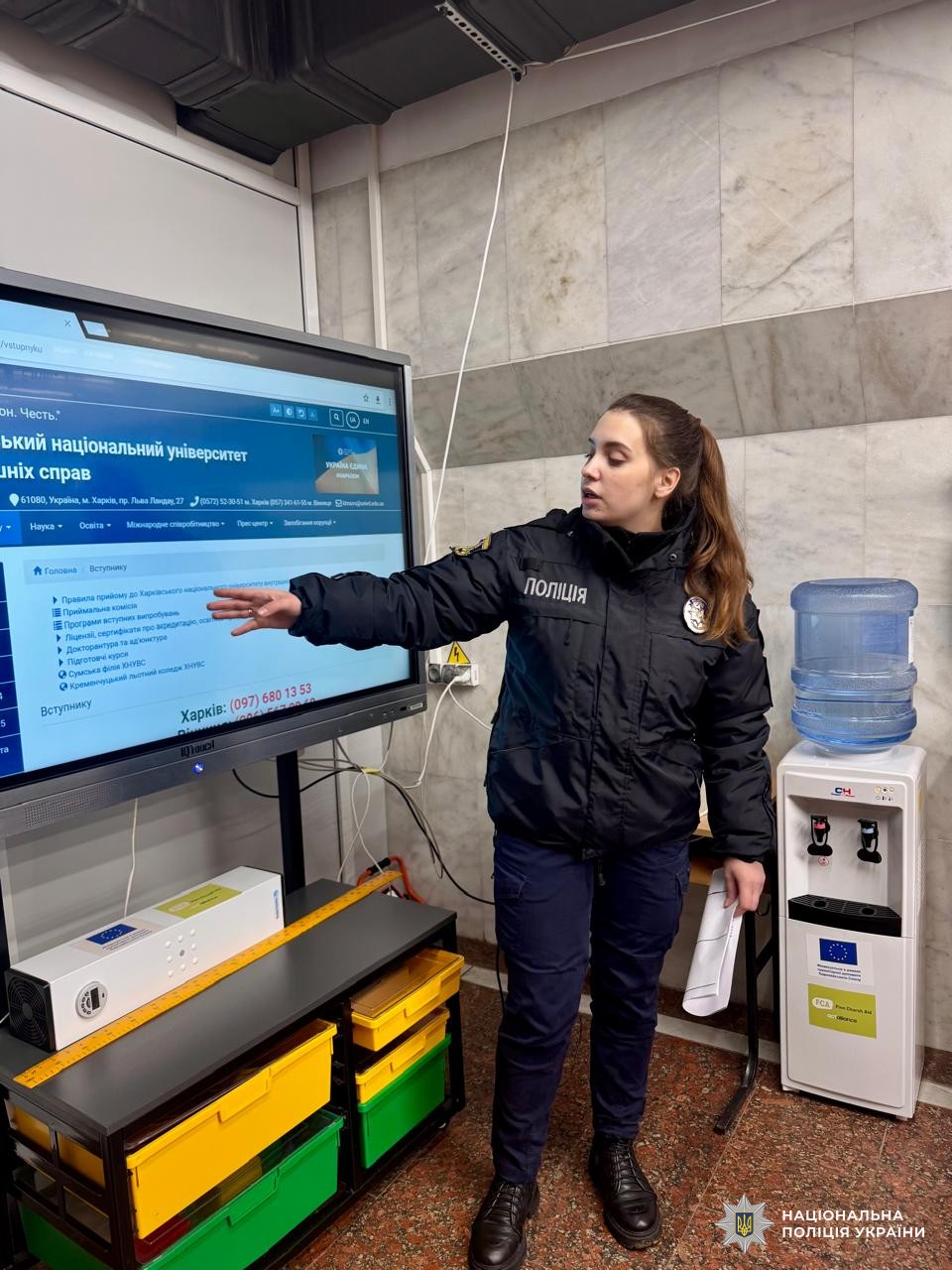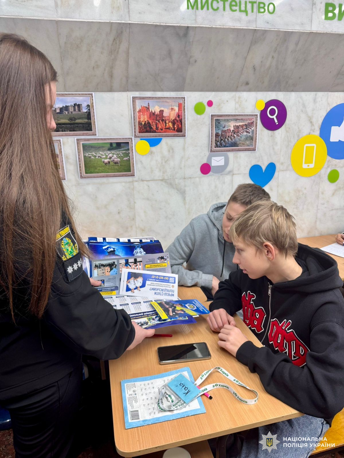 Під час зустрічі поліцейські розповіли майбутнім випускникам інформацію щодо навчання в ліцеях безпекового спрямування та національно-патріотичного виховання для здобуття ними профільної середньої освіти, про умови вступу та навчання у вищих навчальних закладах зі специфічними умовами навчання. Школярам детально роз’яснили про етапи, які потрібно пройти, щоб вступити до навчального закладу, умови проживання, харчування і розмір стипендії, доступні факультети й спеціальності. Також звернули увагу ліцеїстів, що після закінчення навчання кожному курсанту гарантується працевлаштування.