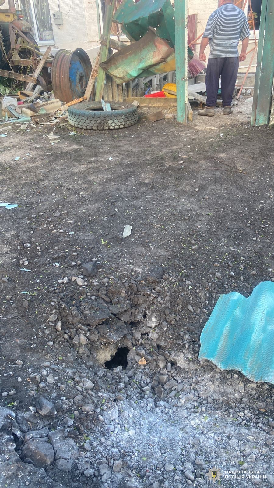 Близько 23:30 внаслідок ворожого артобстрілу у селі Слобожанське пошкоджено приватне домоволодіння, господарчі будівлі, ворота, паркан, трактор.