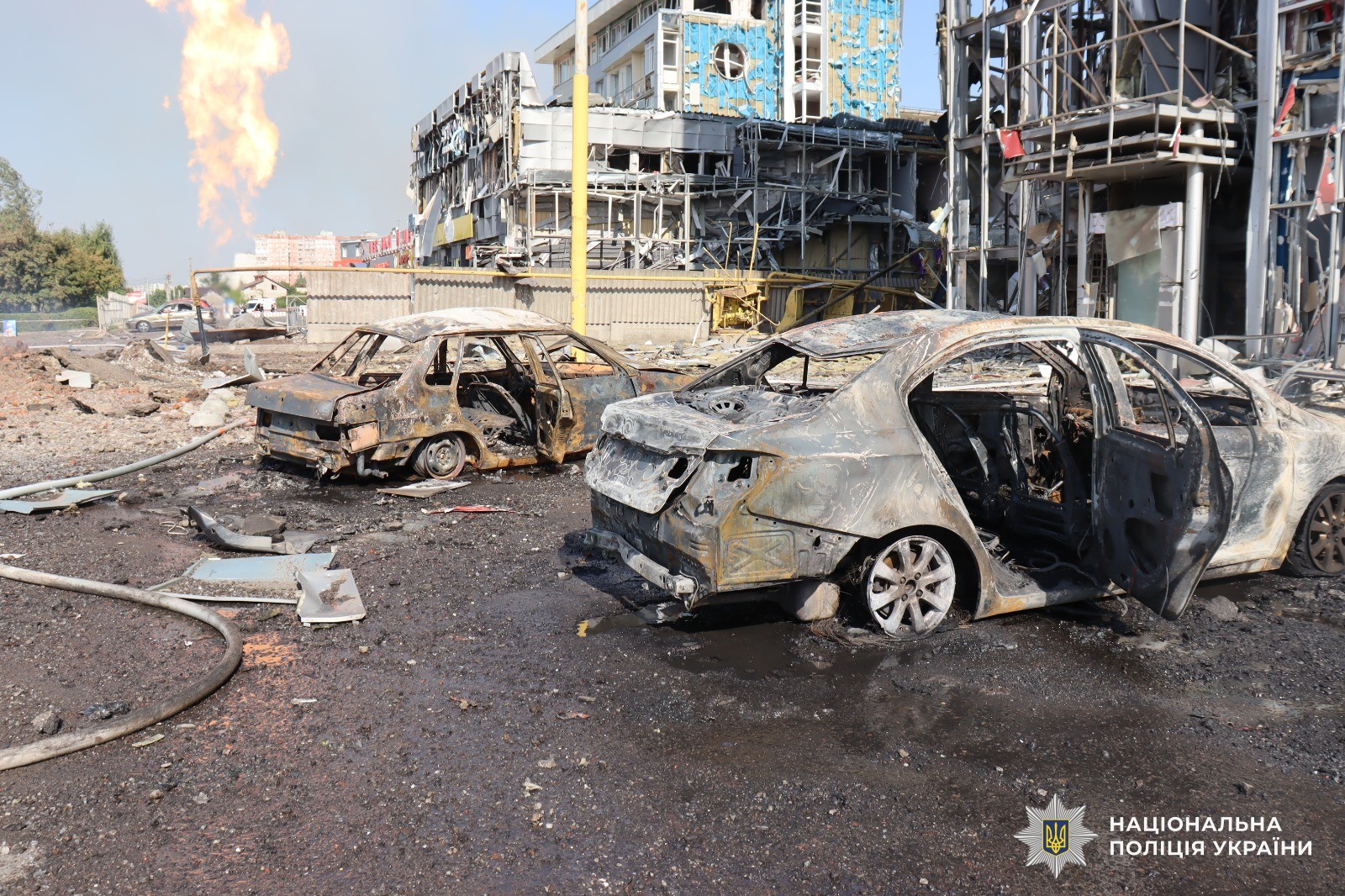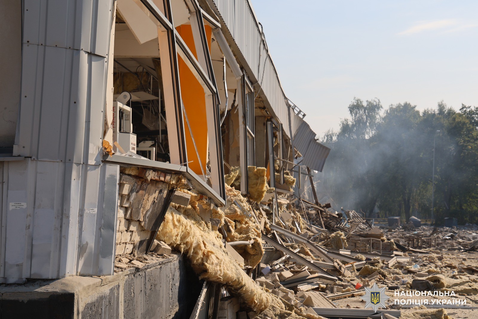 За даними вибухотехників, на території спорткомплексу відбулося 6 вибухів: три влучання ракетами ЗРК С-300 та три ракети Іскандер-М. По торговельному центру ворог також завдав удари ракетами Іскандер-М.