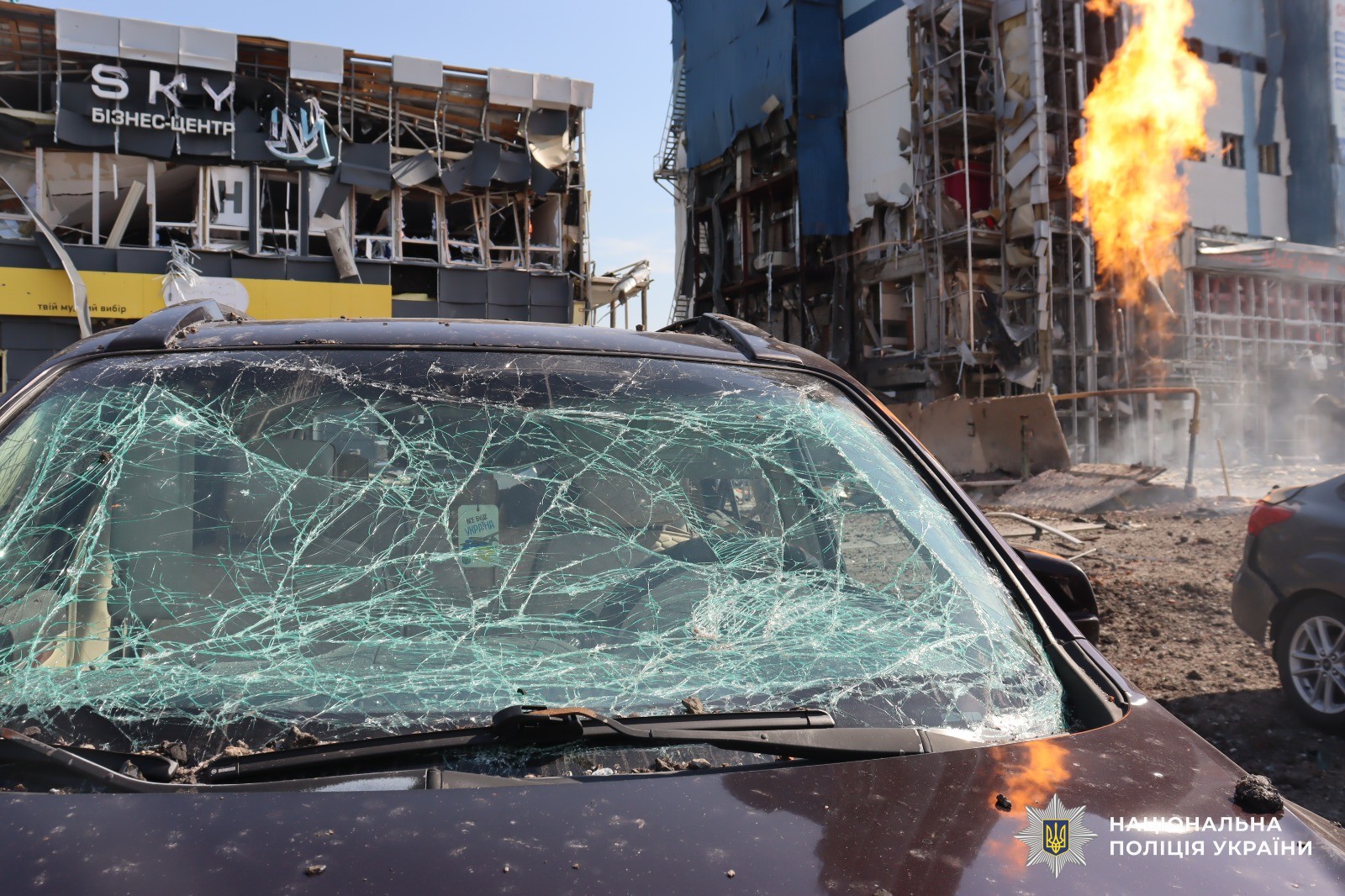 Пошкоджені торговельний центр, житлові будинки, спортивний комплекс, транспортні засоби громадян, газопровід та інші об’єкти. Поранені близько 40 харків’ян, серед яких двоє медиків бригади швидкої допомоги та п’ятеро дітей. Трирічний і тримісячний малюки отримали гостру реакцію на стрес. Постраждалим надається допомога.