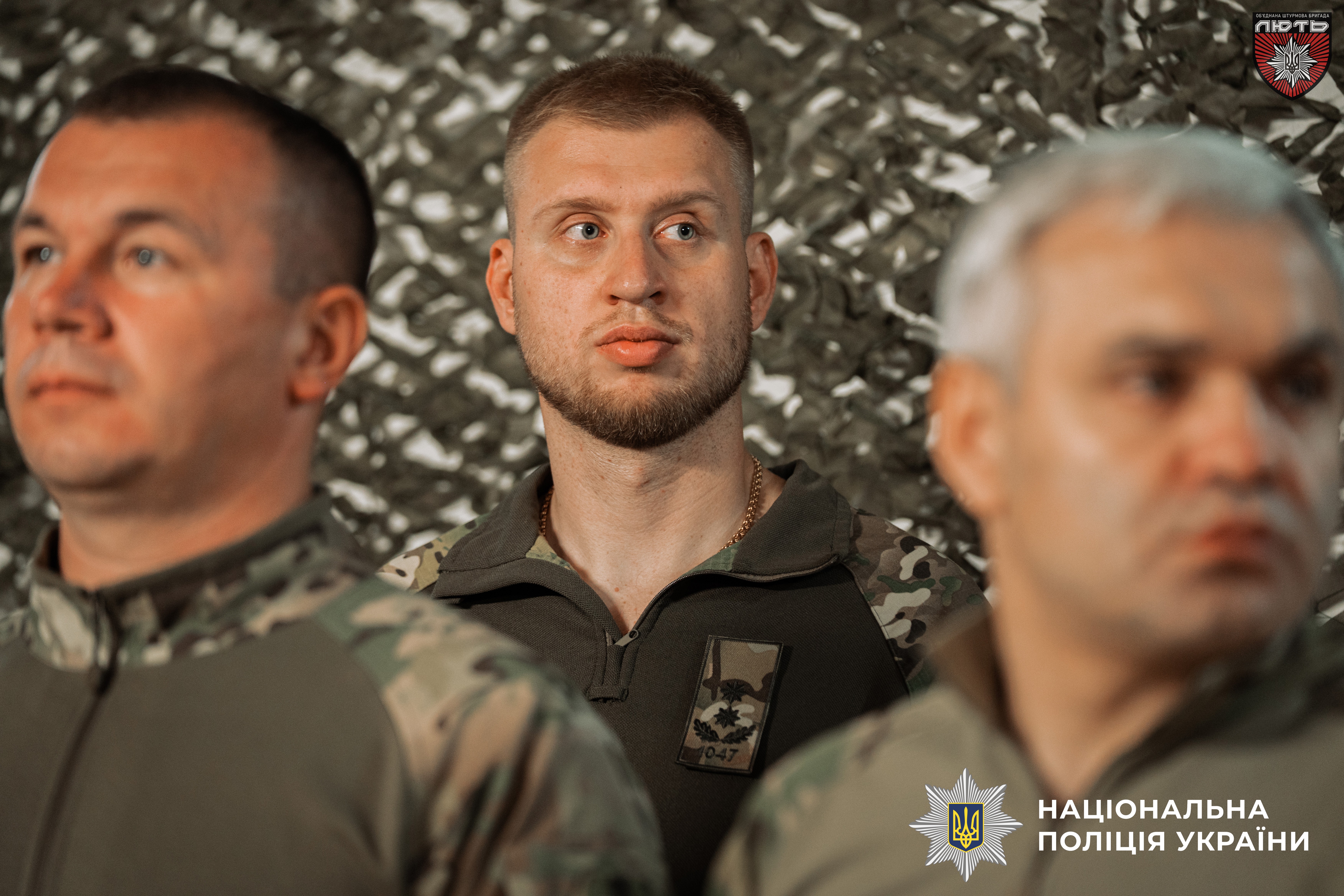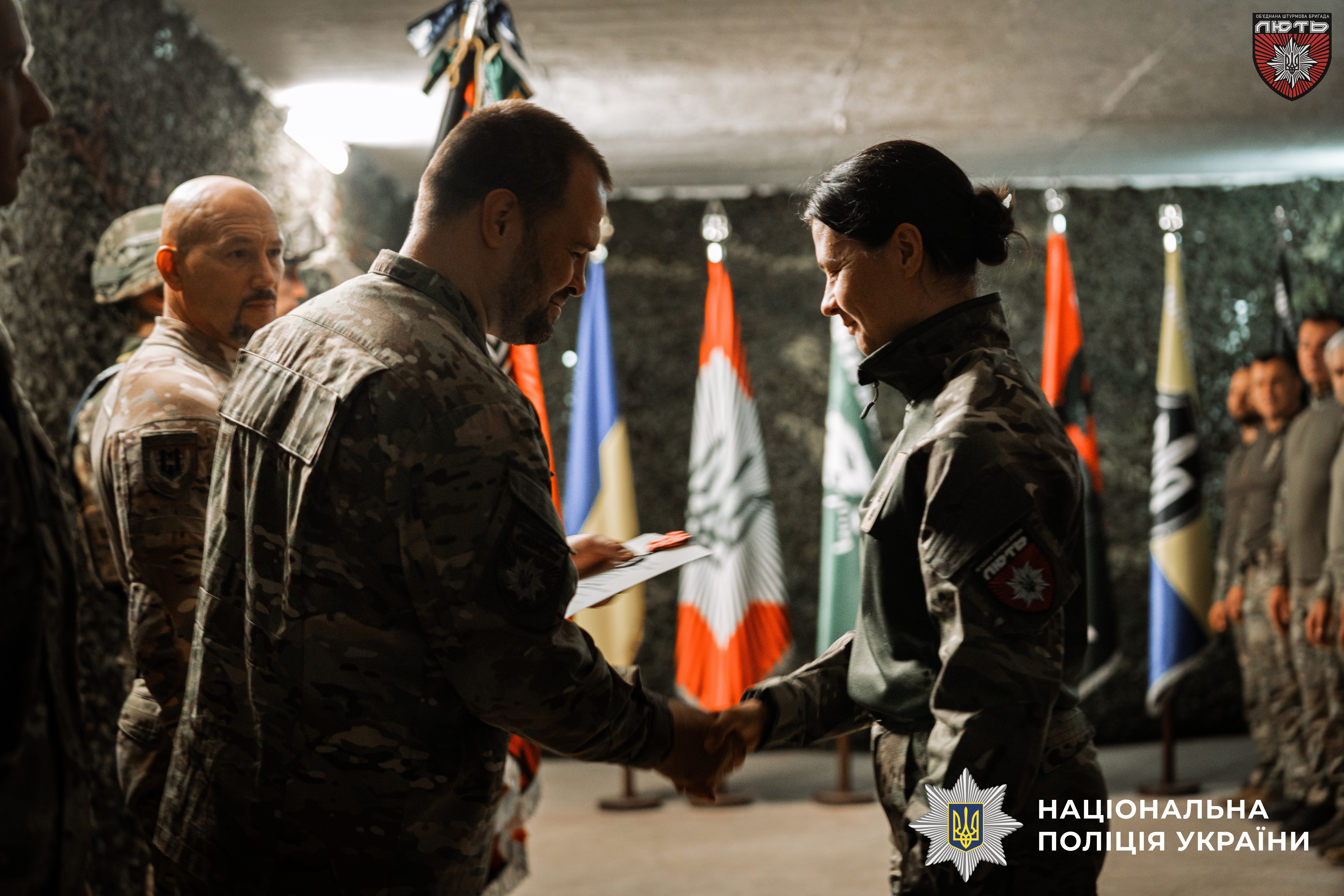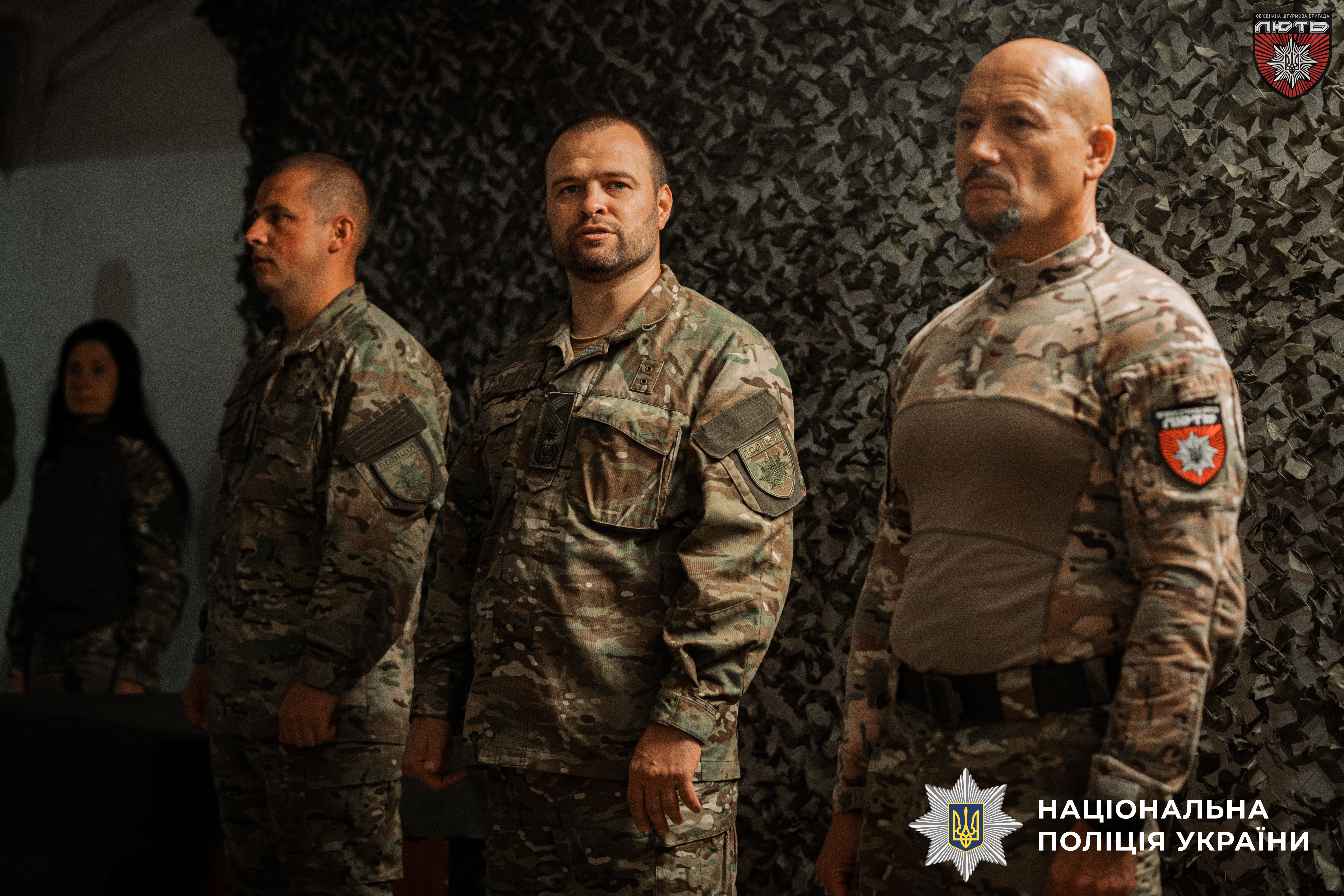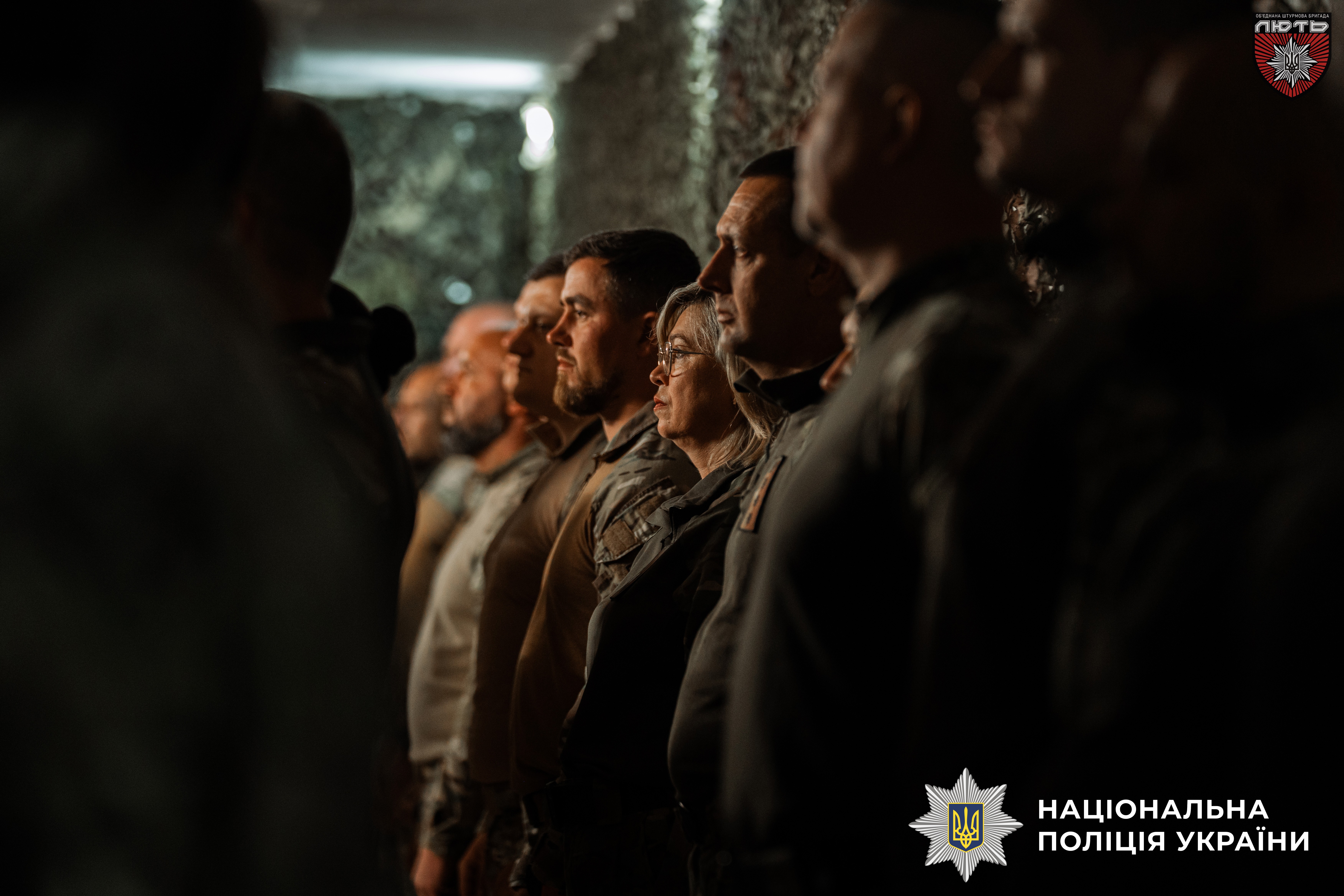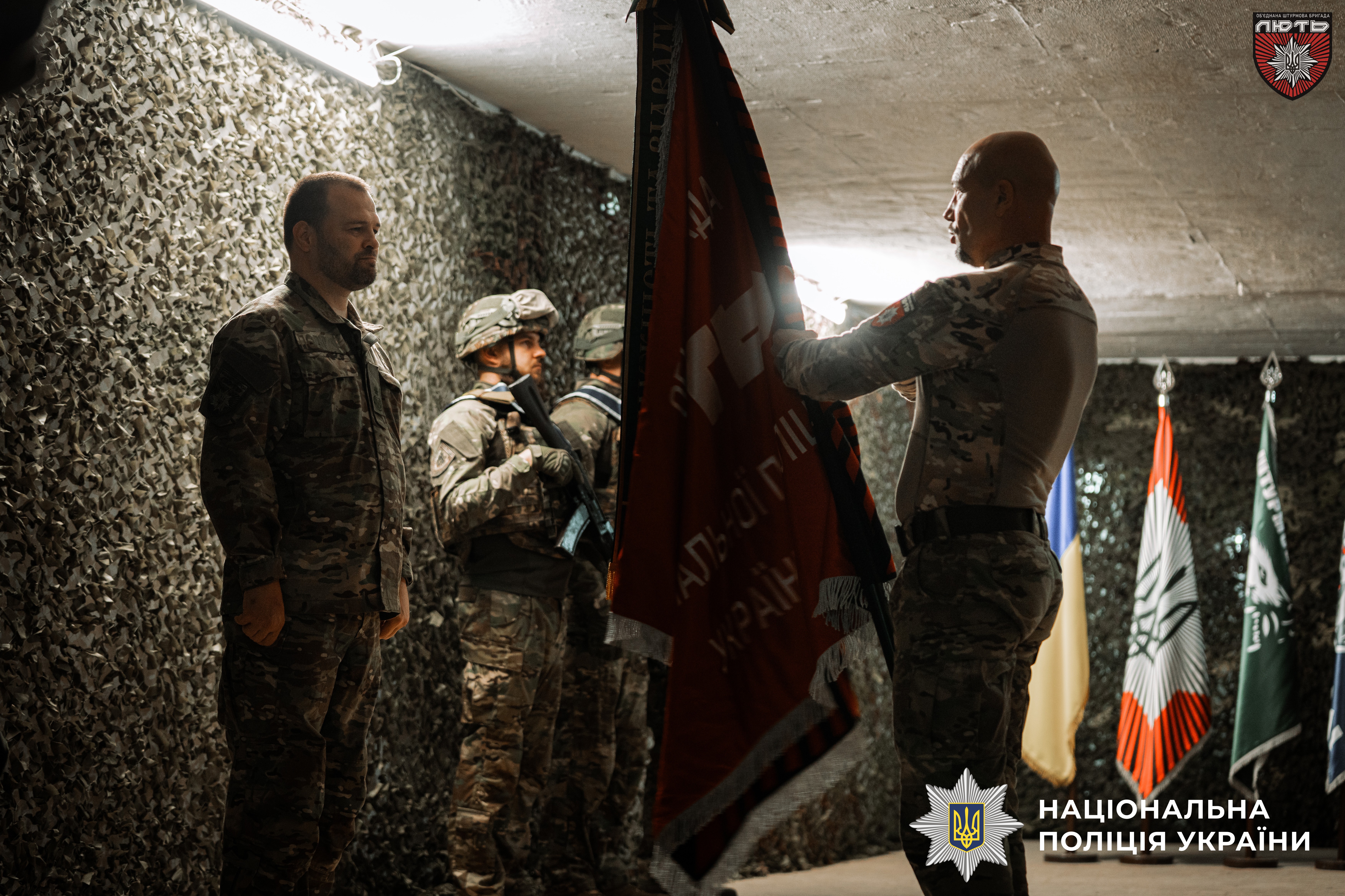 За участі заступника Голови Національної поліції України Олександра Фацевича та першого командира бригади, а нині заступника Командувача Оперативно-стратегічного угруповання військ «Дніпро» Олександра Нетребка, відбулася церемонія передачі бойового прапора новому командиру Об’єднаної штурмової бригади Нацполіції «Лють».