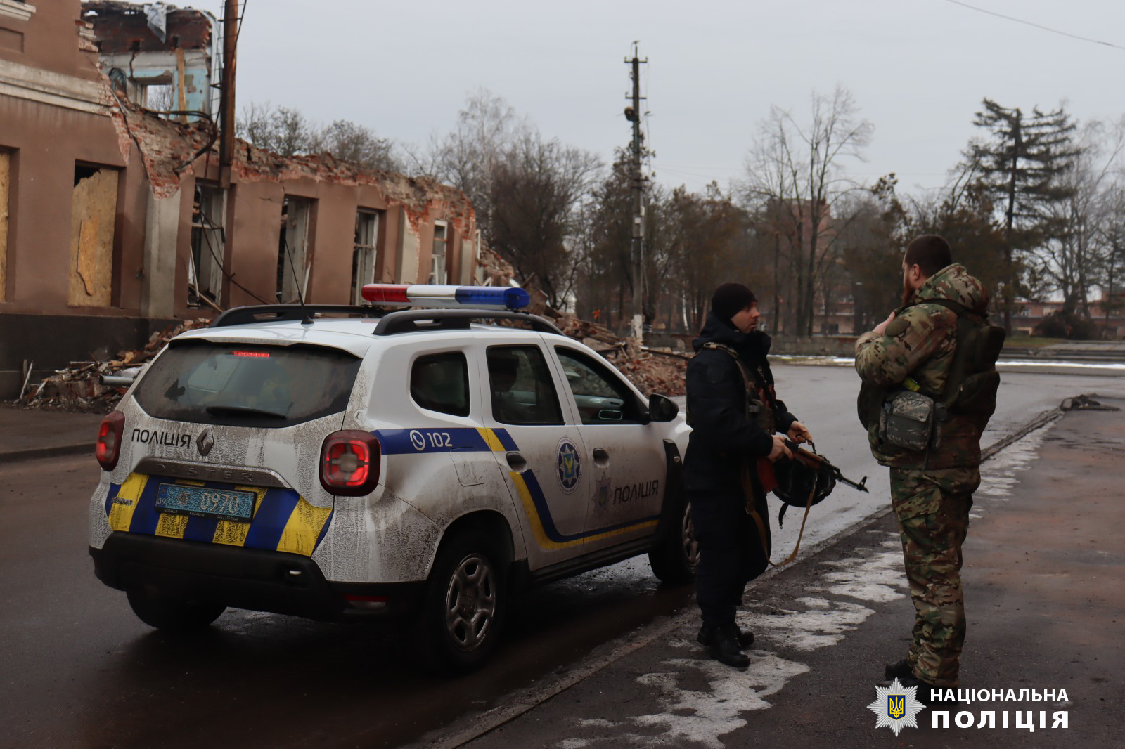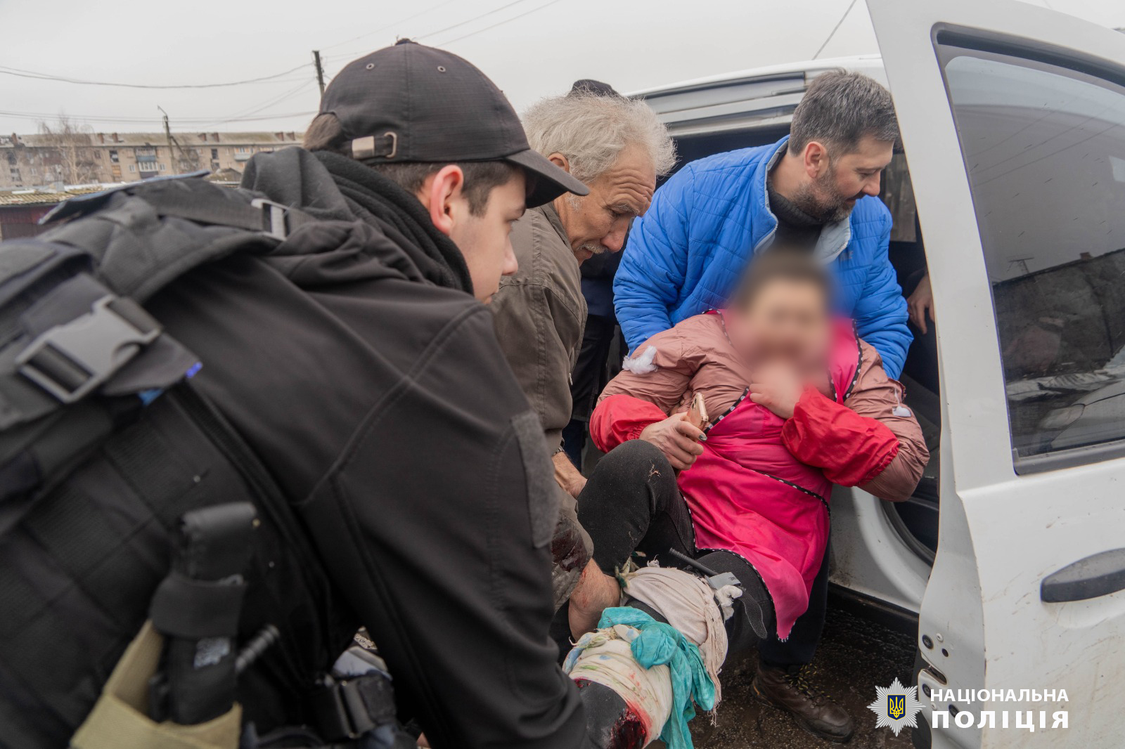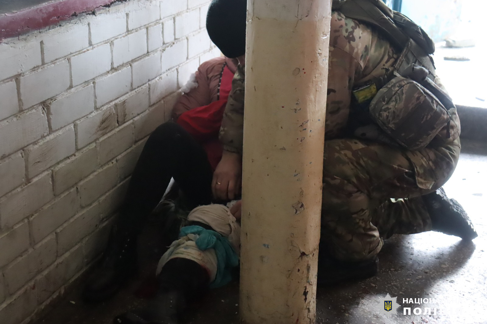 Працівники поліції, які перебували на добовому чергуванні у складі ГРПП, знаходилися неподалік місця прильоту. Вони оперативно прибули на місце події та доставили поранену до лікувального закладу. Жінку терміново прооперували.