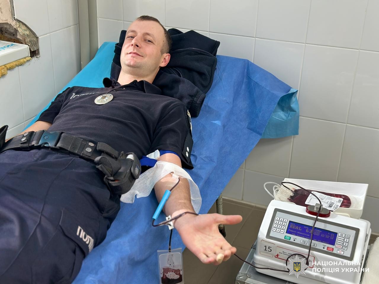 Поліцейські долучилися до здачі крові у пересувному донорському пункті