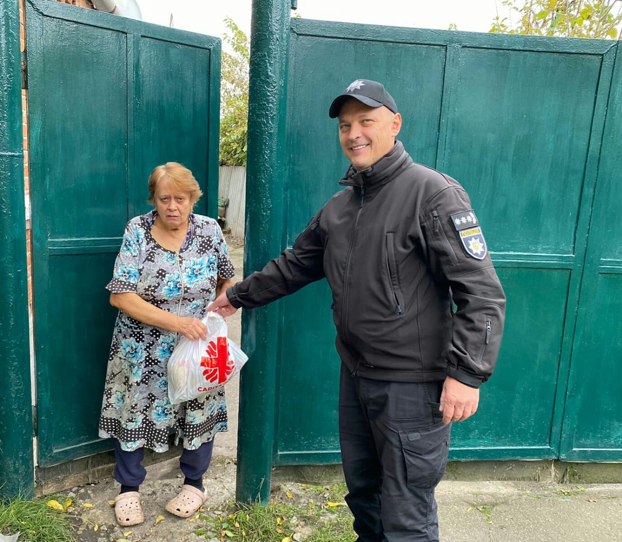 Людям похилого віку та сім'ям, в яких загинули військові, правоохоронці привезли продуктові набори та засоби особистої гігієни.
