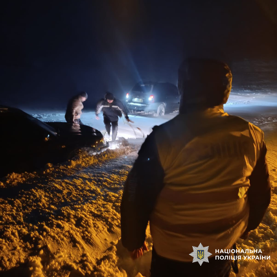 Правоохоронці надають допомогу водіям, чиї транспортні засоби потрапили у снігові замети або не можуть самостійно продовжити рух через слизьке дорожнє покриття. Працівники поліції витягують автомобілі та дбають про безпеку всіх учасників дорожнього руху.