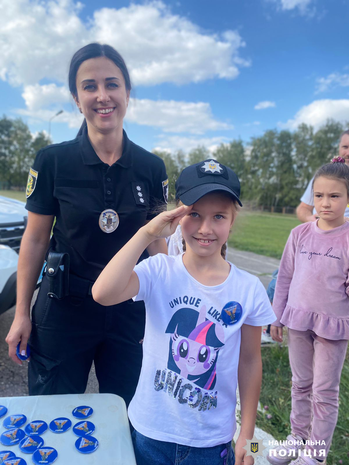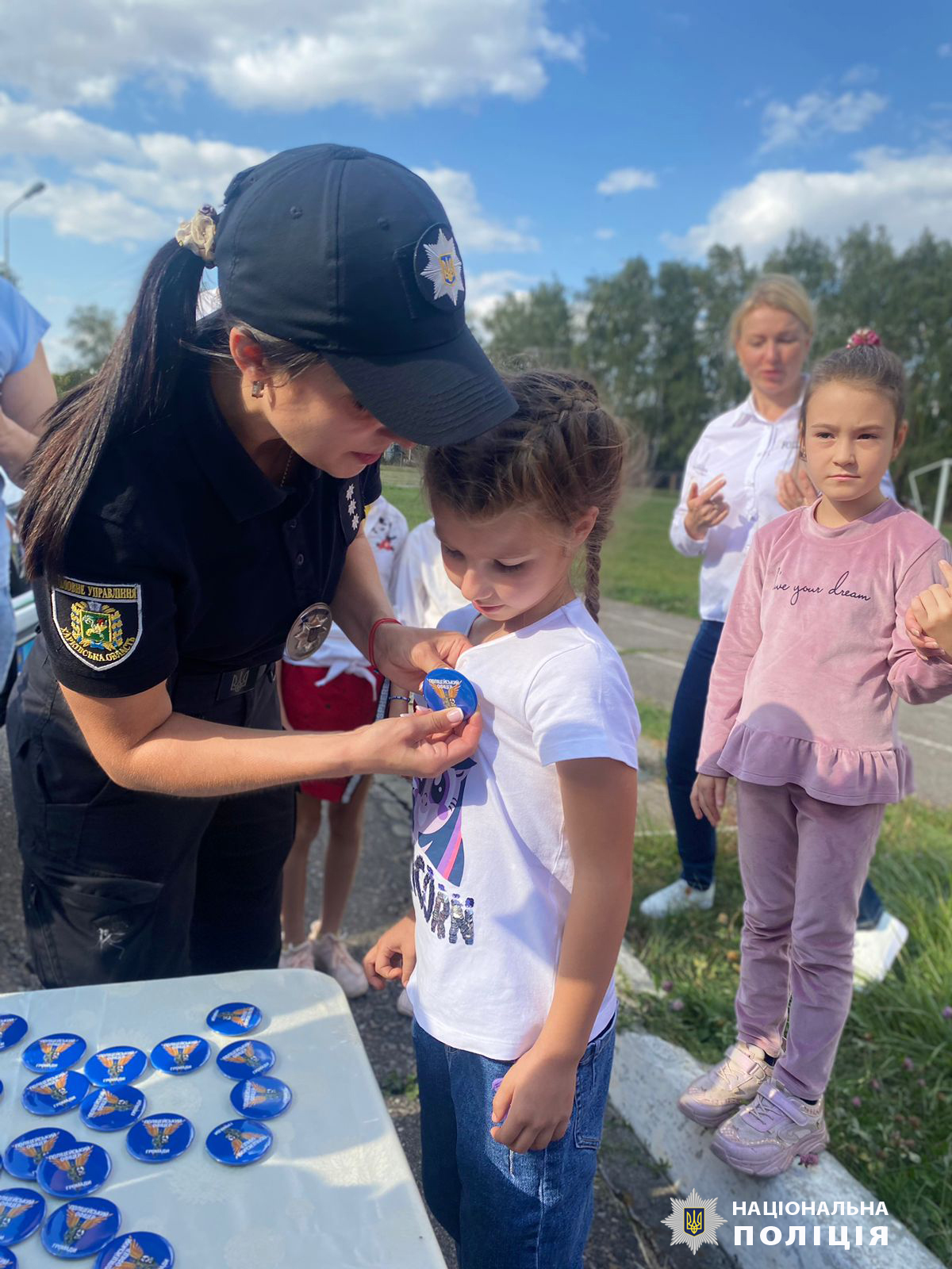 Діти вирішували веселі завдання та за свою активність отримали подарунки від правоохоронців – значки з логотипом поліцейського офіцера громади.